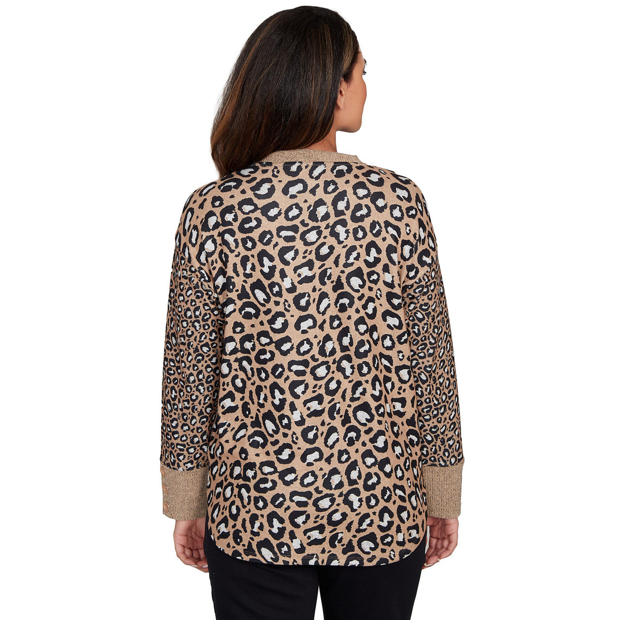 Women's Sweater Trimmed Cozy Animal Print Top - 28156