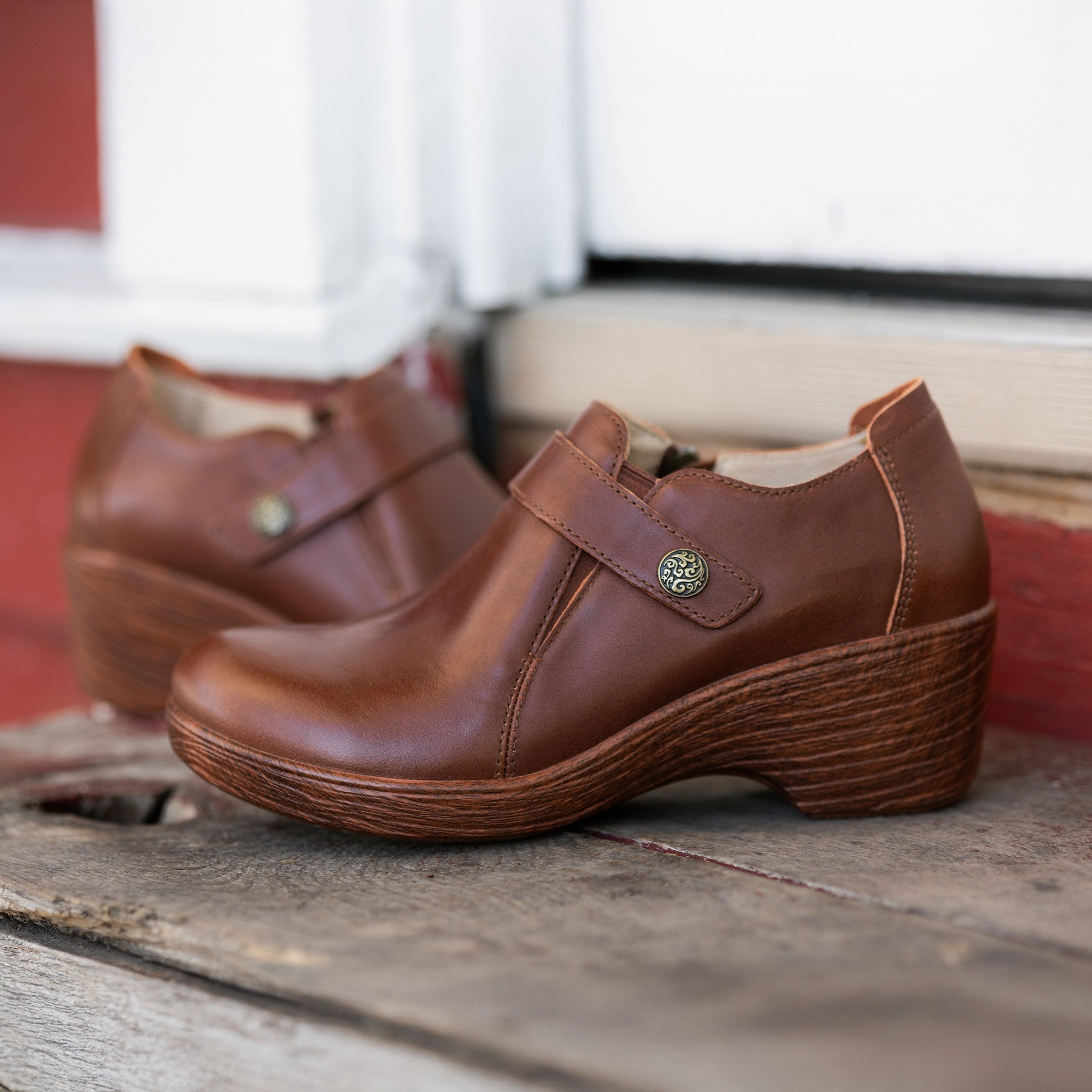 For those seeking full coverage with maximum comfort, the Alegria Silah women’s leather wedge offers full coverage comfort as a standout choice. Designed with a removable arch support footbed, this wedge offers excellent personalized support while maintaining all-day comfort.