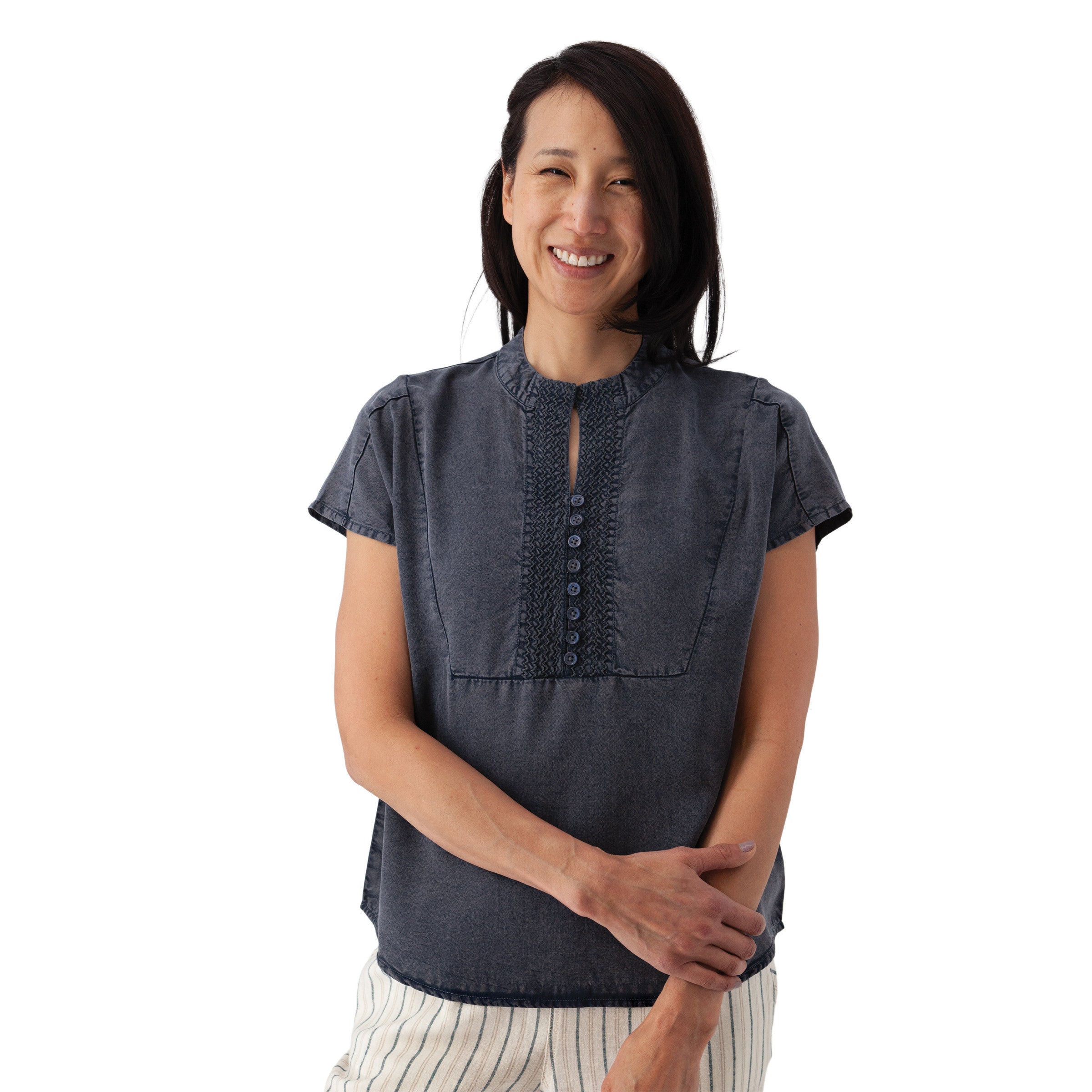 Fleur de Lis Smocked Cuff Top - J29614AS