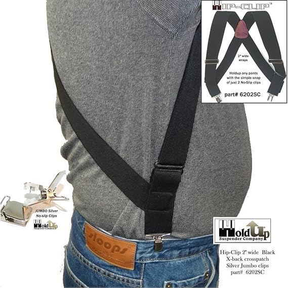 Holdup Hip-clip Style 2" Wide Trucker Suspenders with USA Patented No-slip® Clips