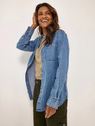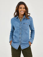 Womens Legendary All Purpose Solid Button Down Denim Shirt