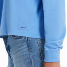 - Self-fabric taping inside back neck. Ribbed cuff with Spandex.