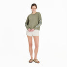 Women's Wildflowers and Bees Long Sleeve Crusher Boxy Tee - Moss Green - 139731