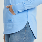- Tunic length with hood, self-fabric cuffs, kangaroo pocket and rounded hi-lo hem