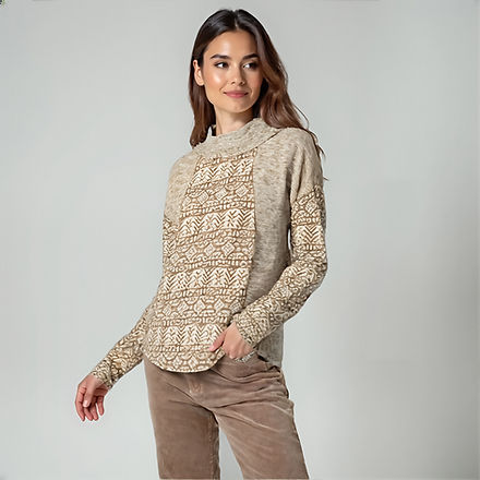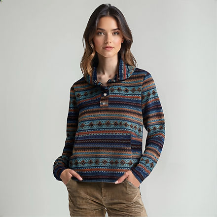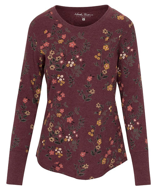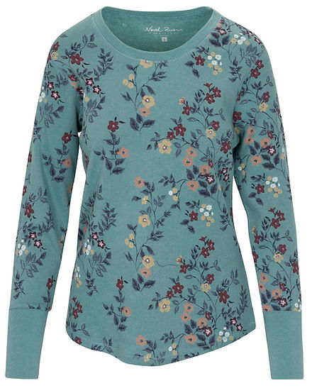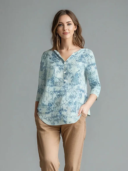 Women's Printed Burnout Henley 3/4-Sleeve Top - NRL2612