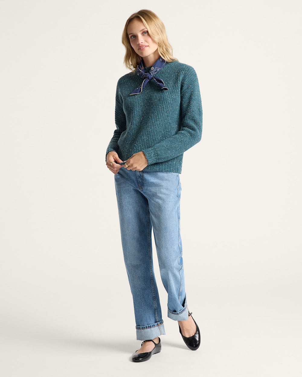 WOMEN'S DONEGAL EYELET SWEATER - TEAL - TCO133-87499