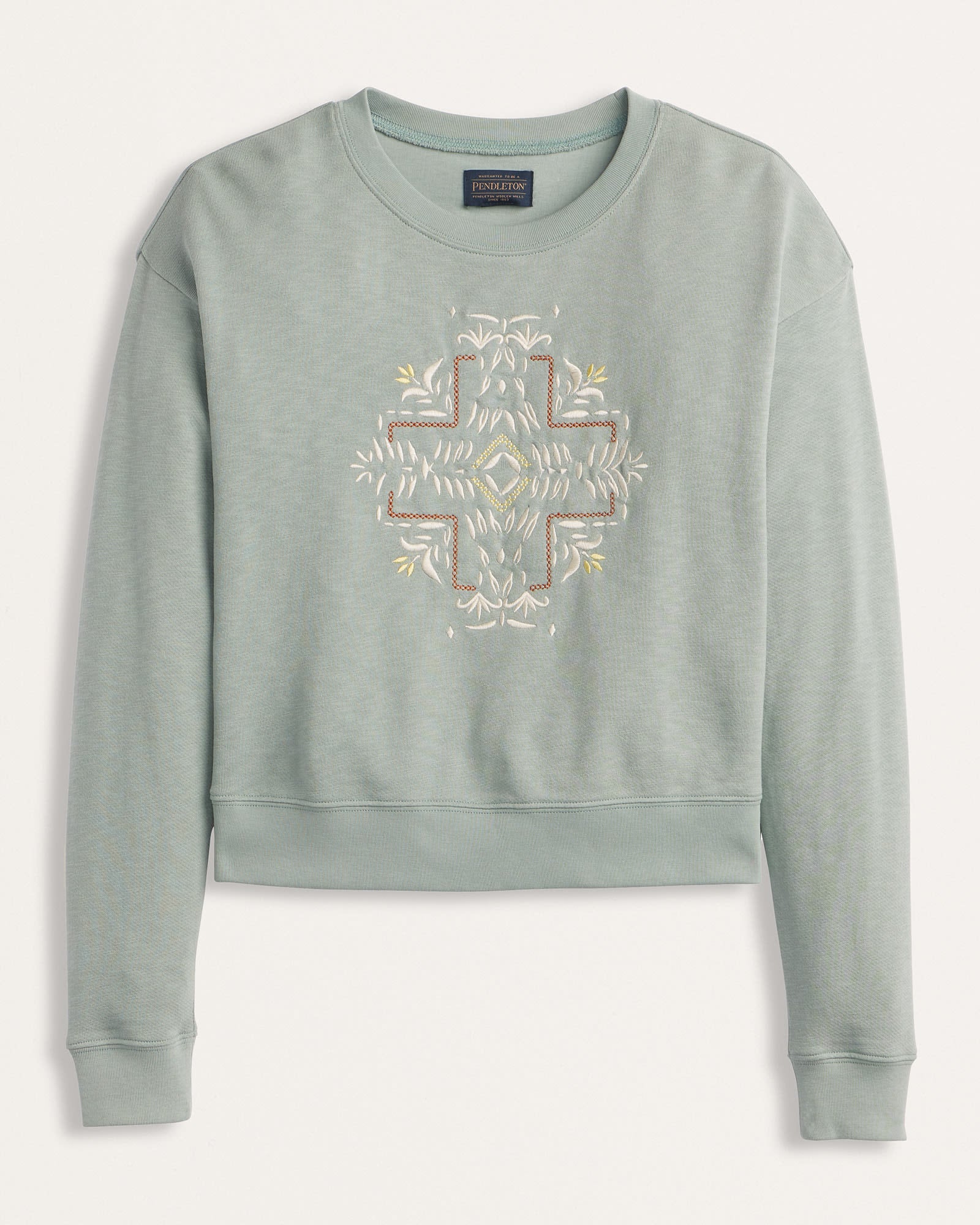 WOMEN'S EMBROIDERED FRENCH TERRY PULLOVER - SAGE - TB409-87538