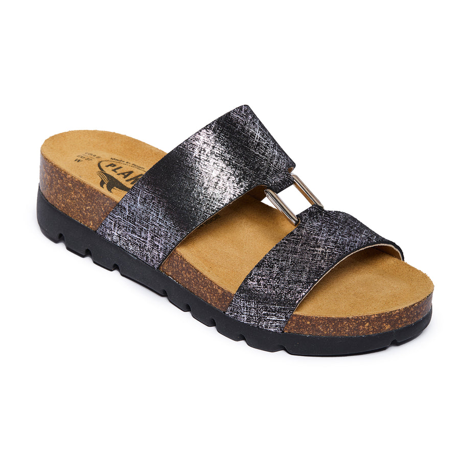 Clarissa Two-Strap Sandal in Pewter Crinkle - 355994