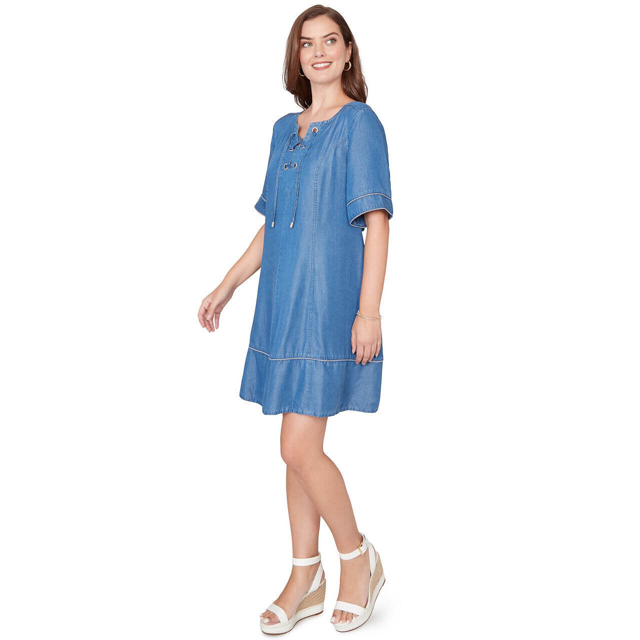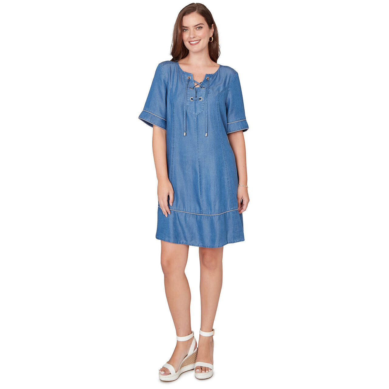 Women's Lace-Up Tencel™ Tipped Dress - 78480