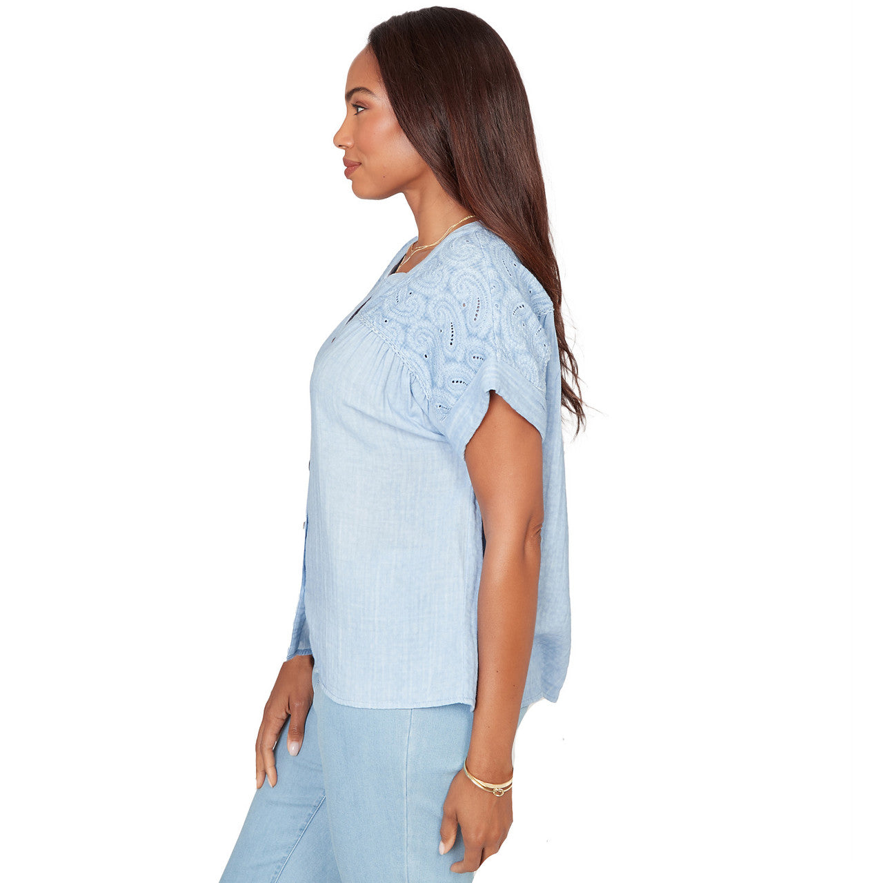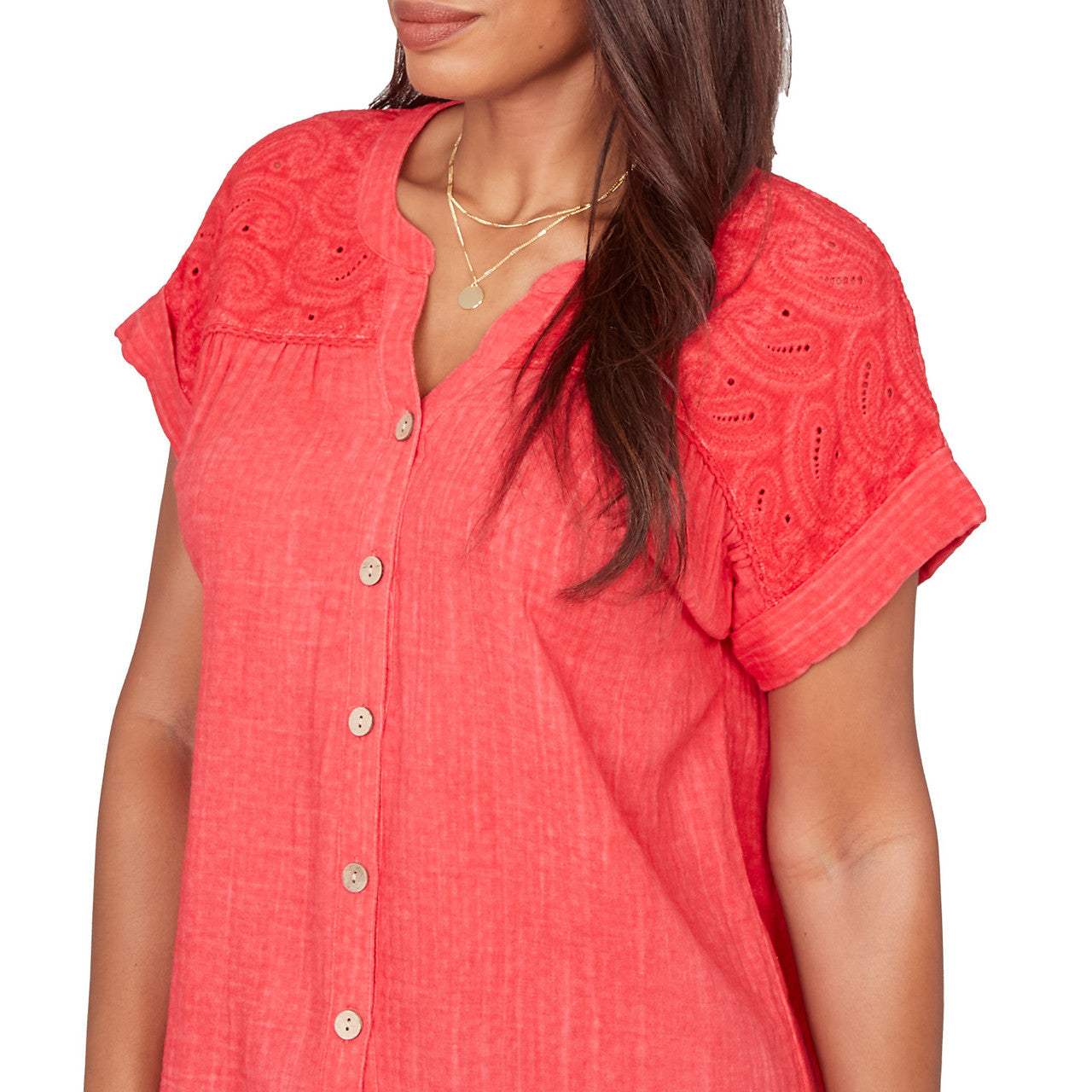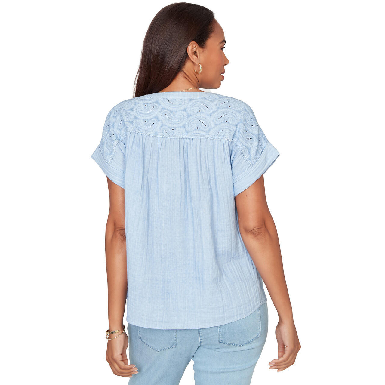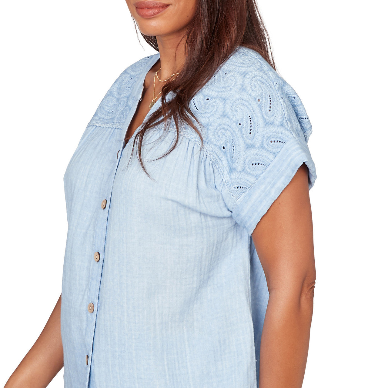 Women's Paisley Embroidered Gauze Button Tee - 76572