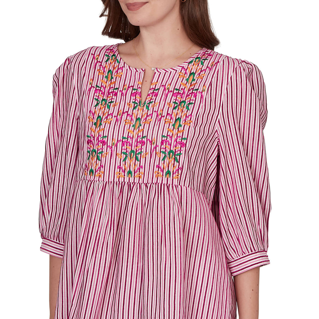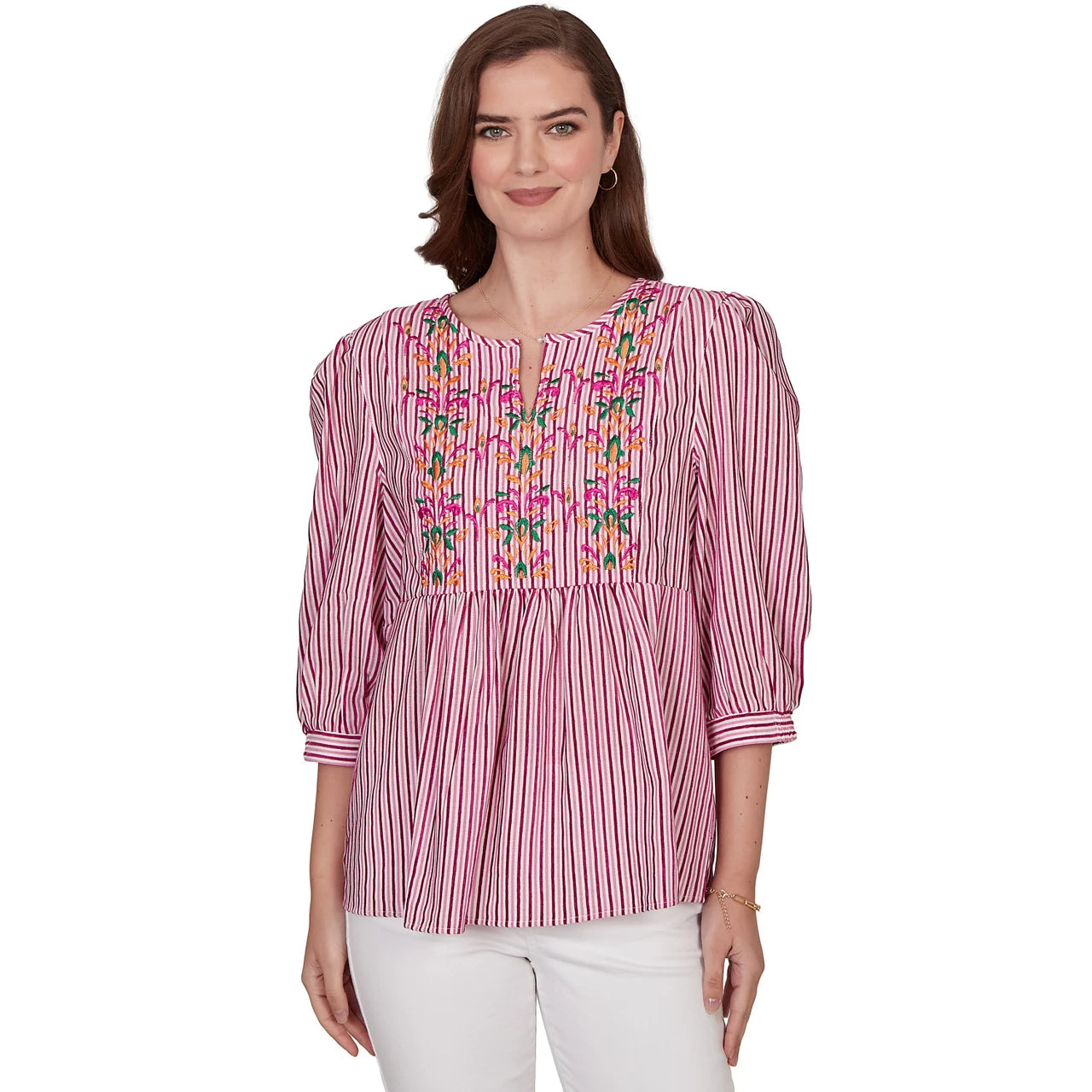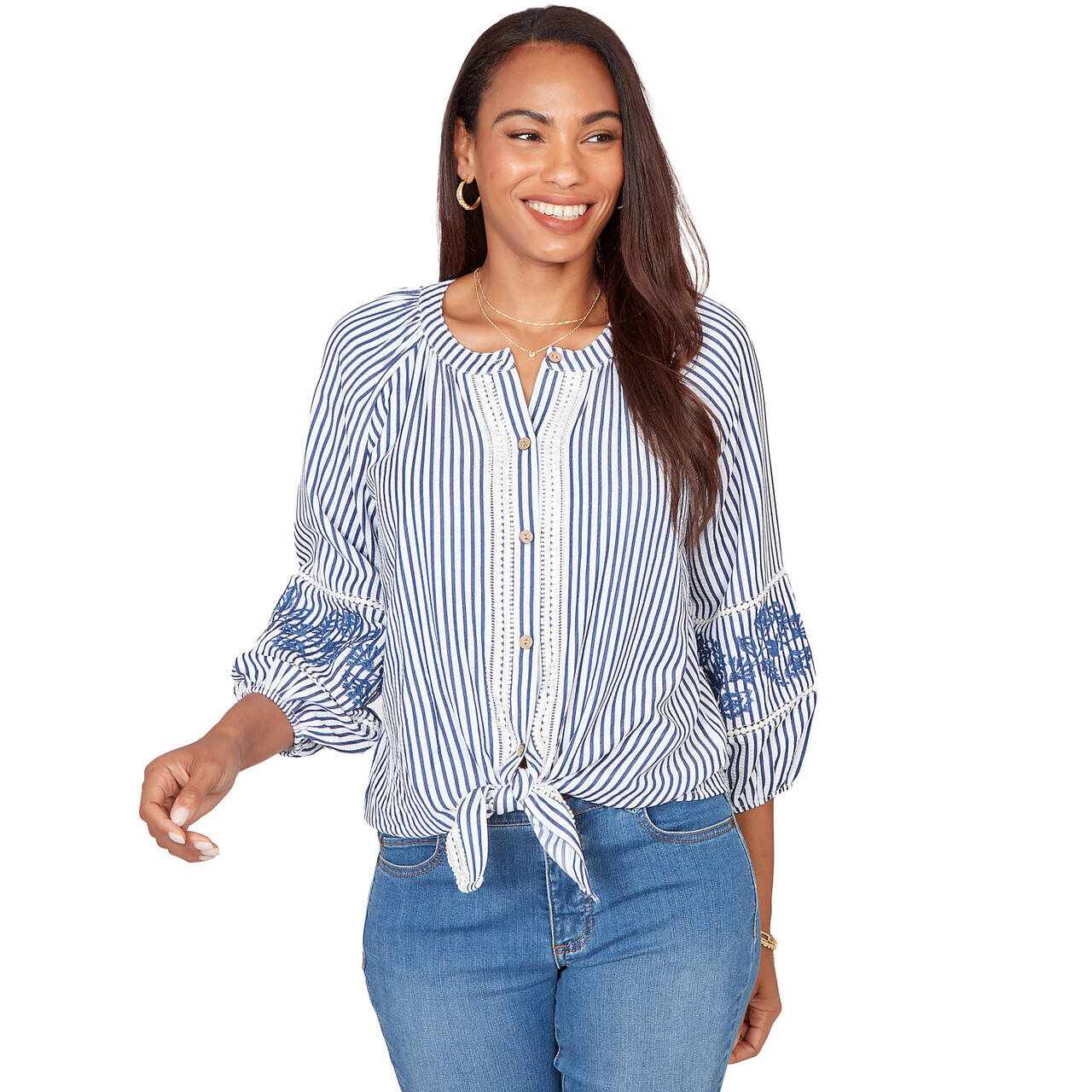 Women's Embroidered Placket Stripe Blouse - 75543