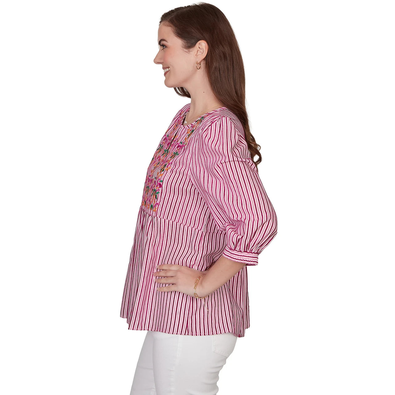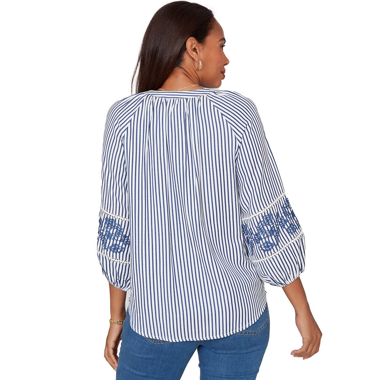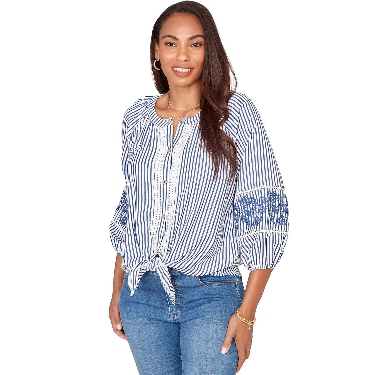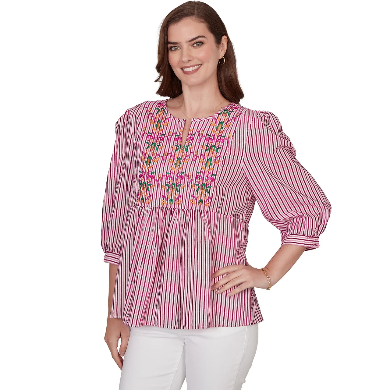 Women's Embroidered Placket Stripe Blouse - 75543