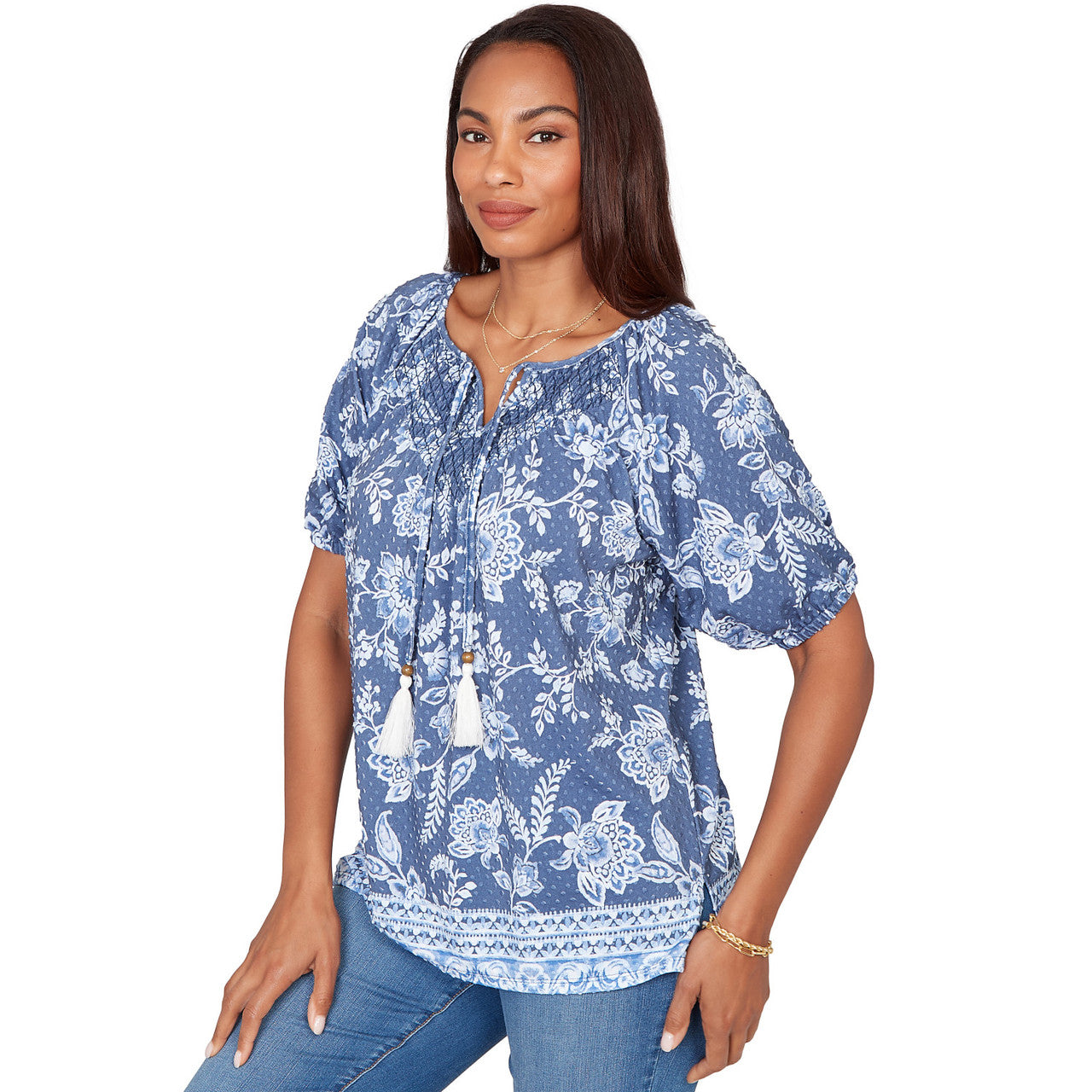 Women's Smocked Floral Clip Dot Top - 76551