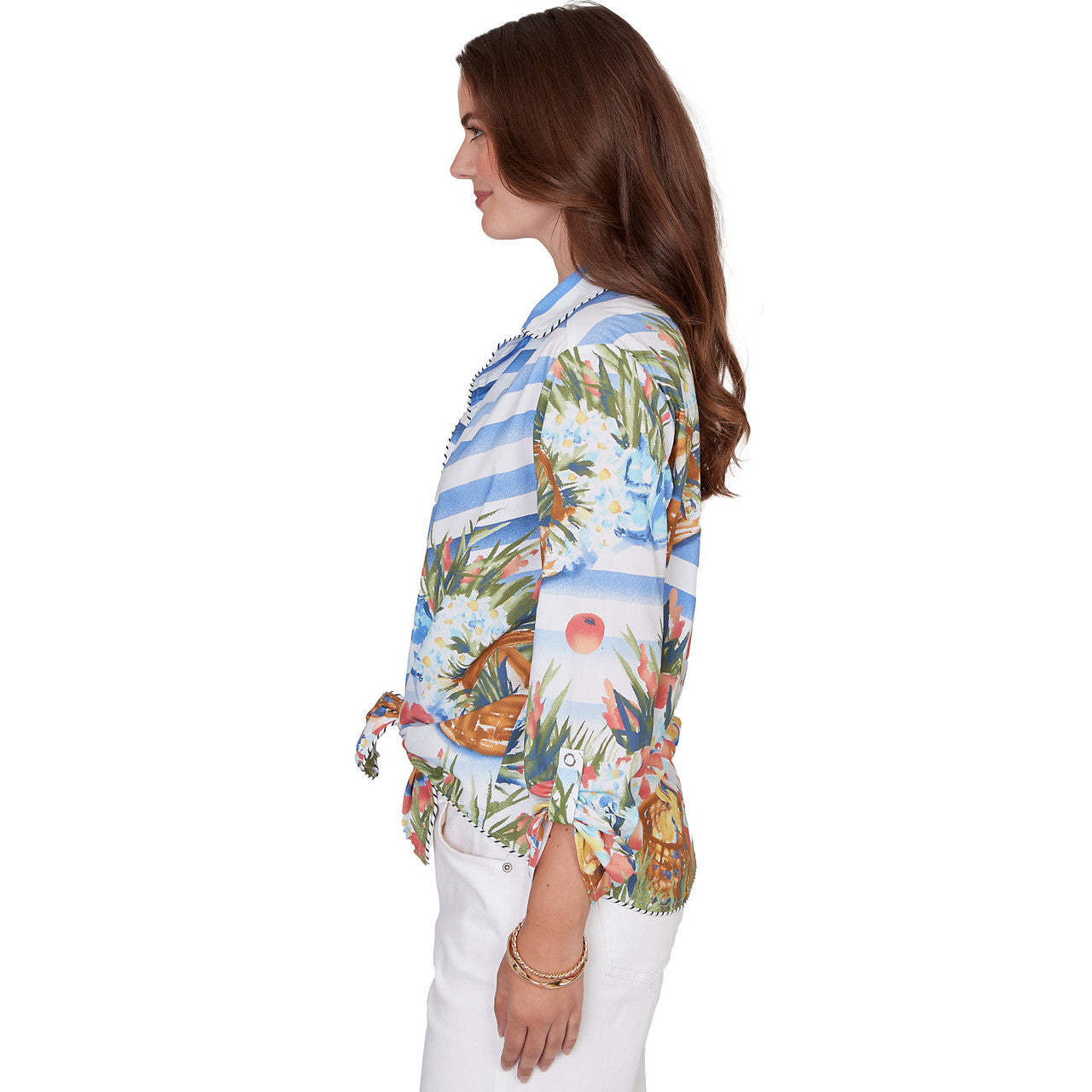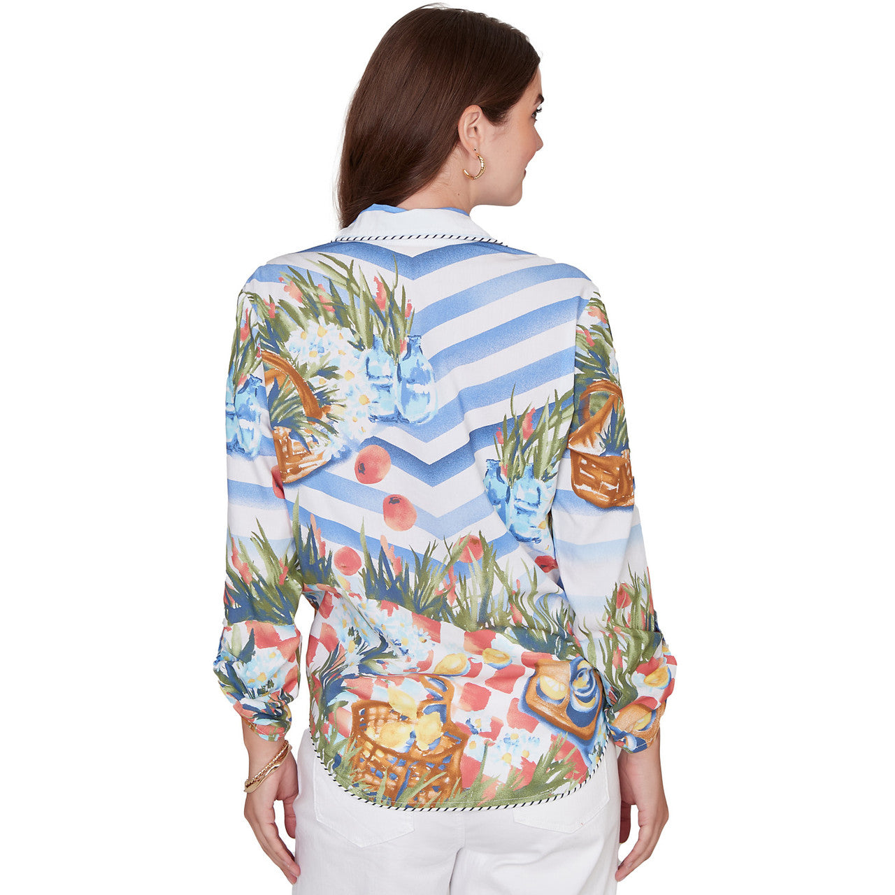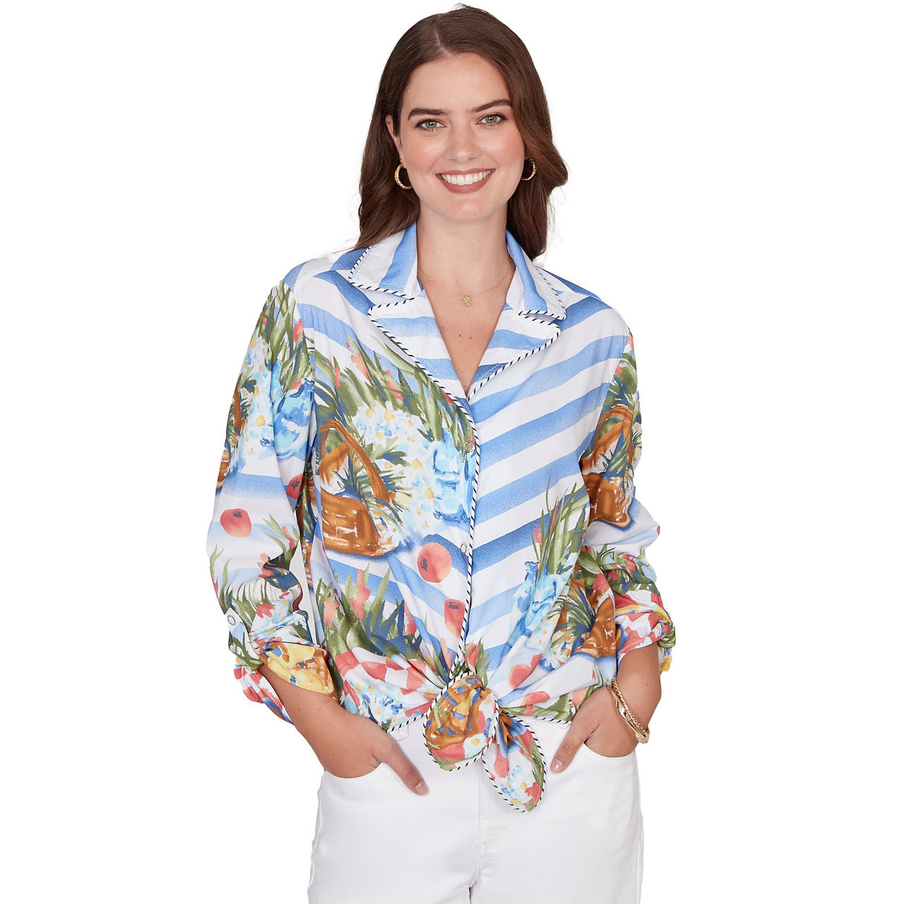 Women's Picnic Print Poplin Tied Snap Front Top - 78444