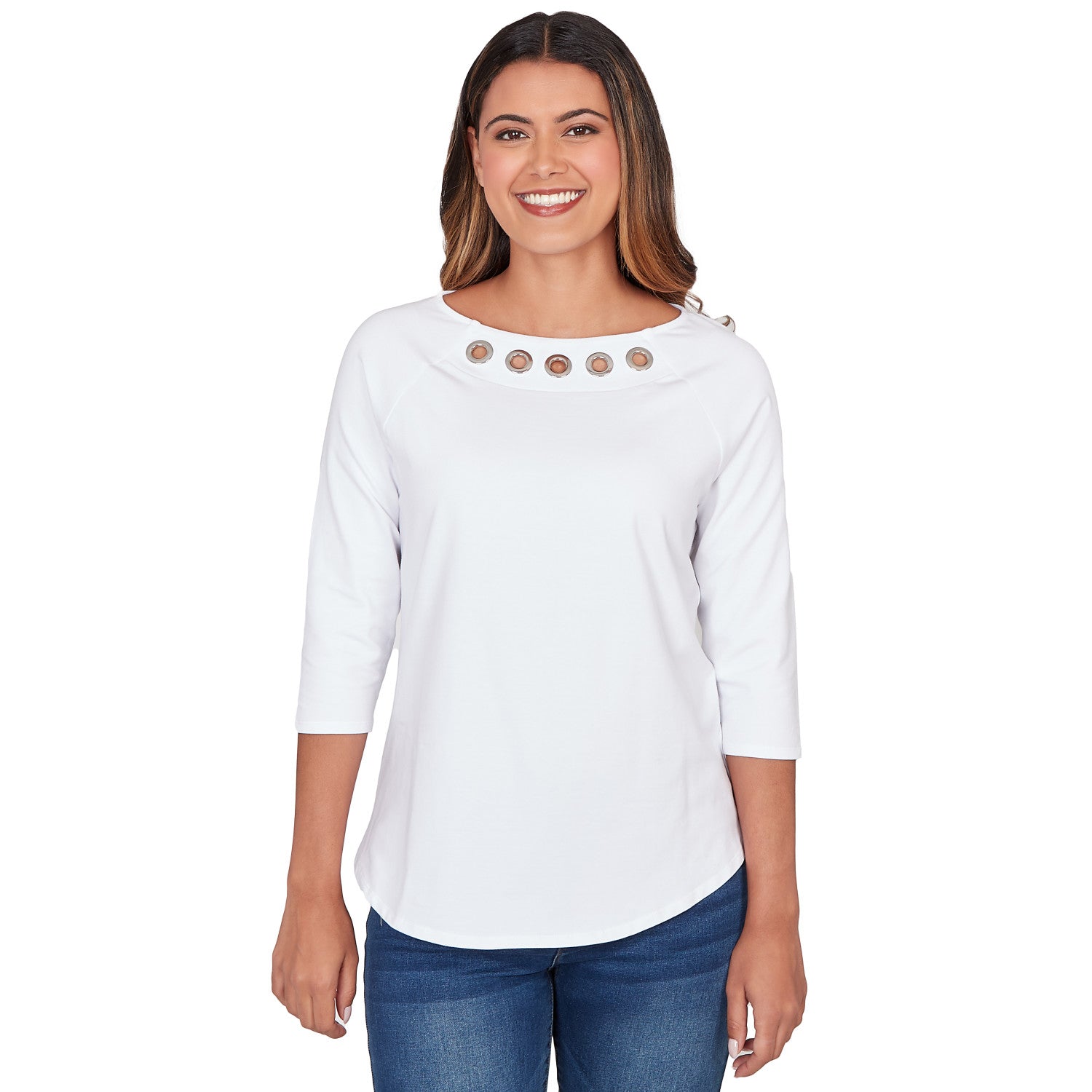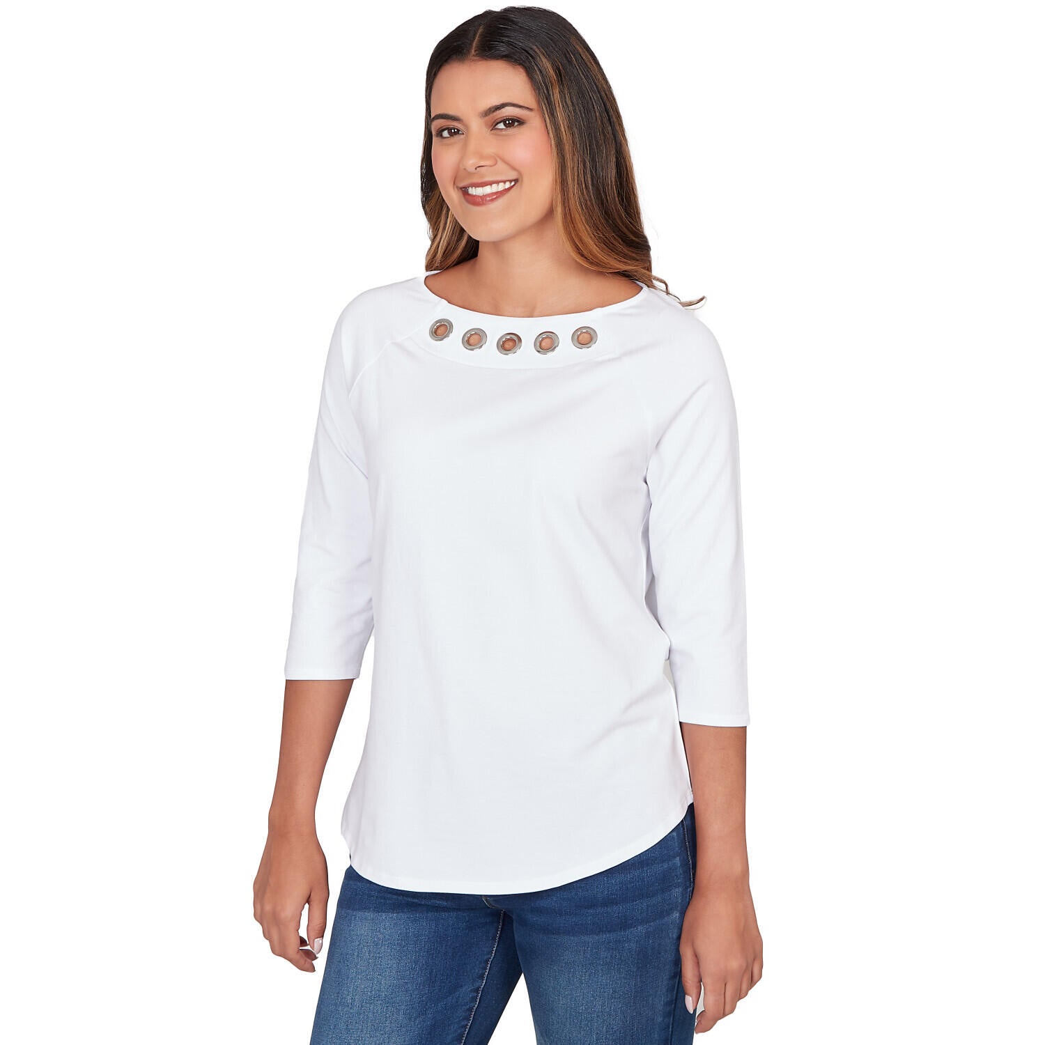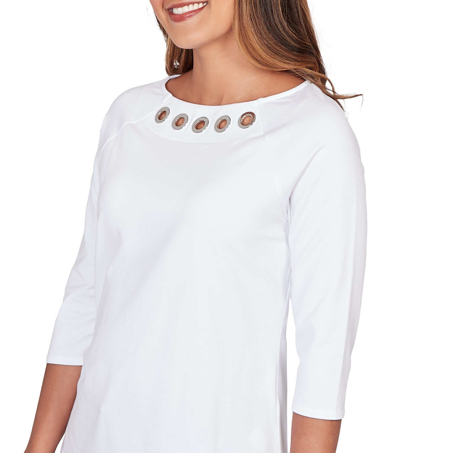 Women's Grommet Neck Solid Knit Top - 78457