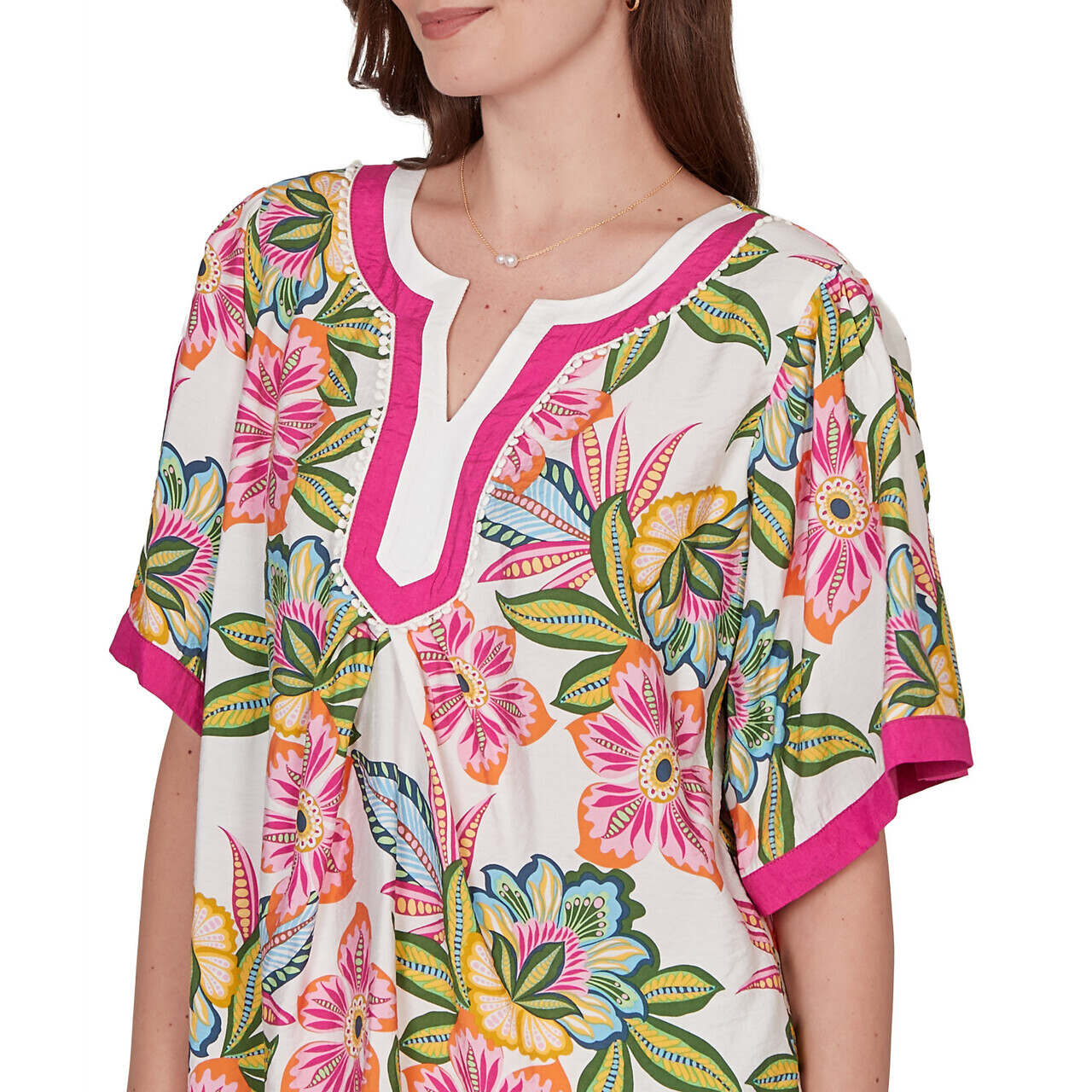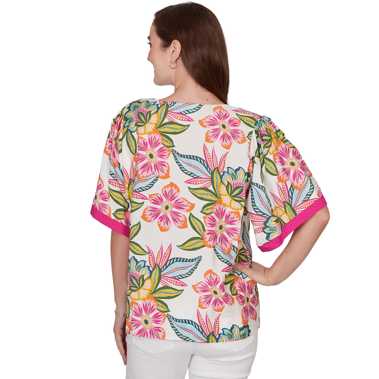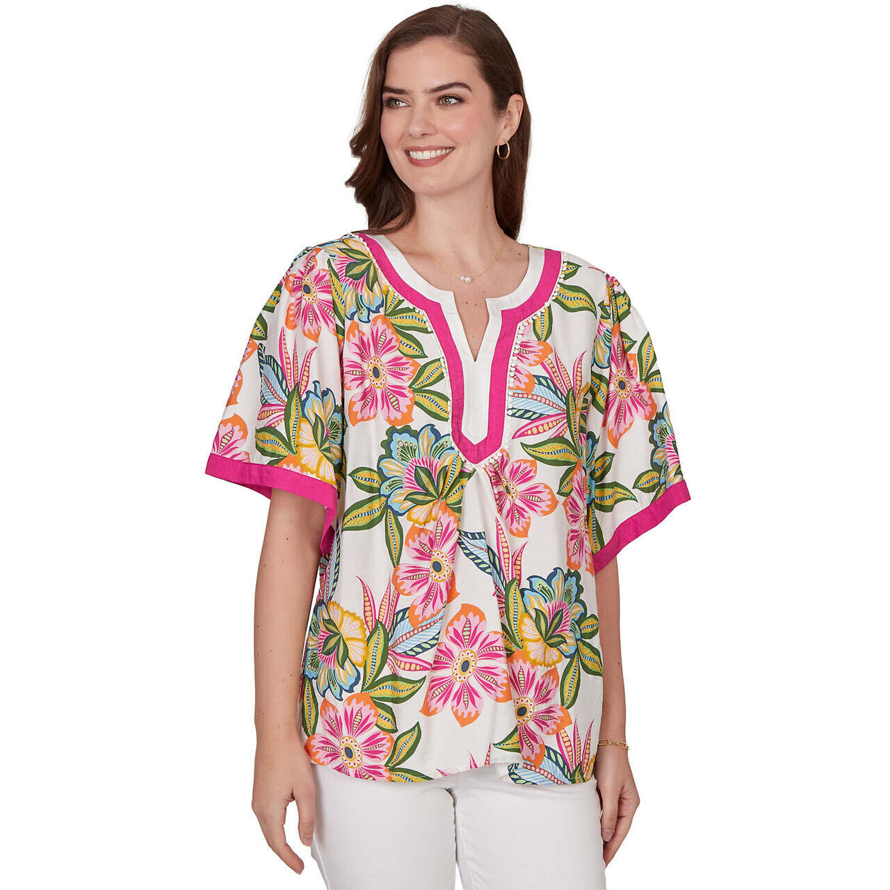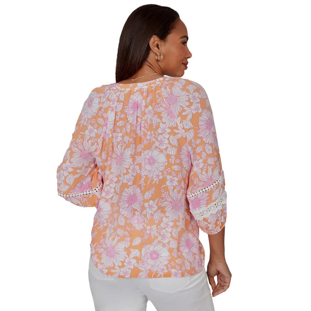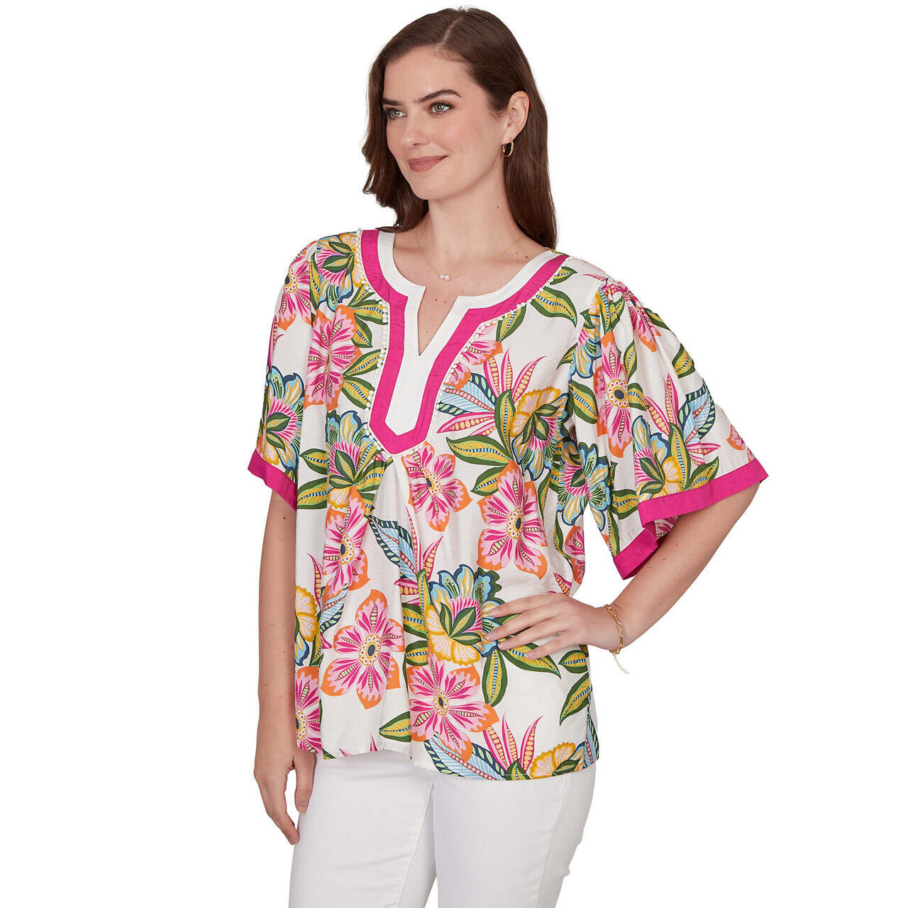 Women's Tropical Floral Trim Detail Top - 75542