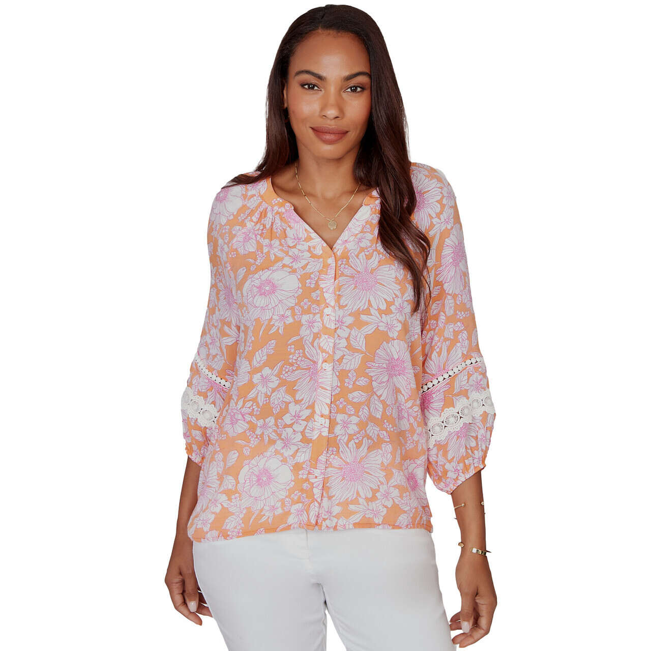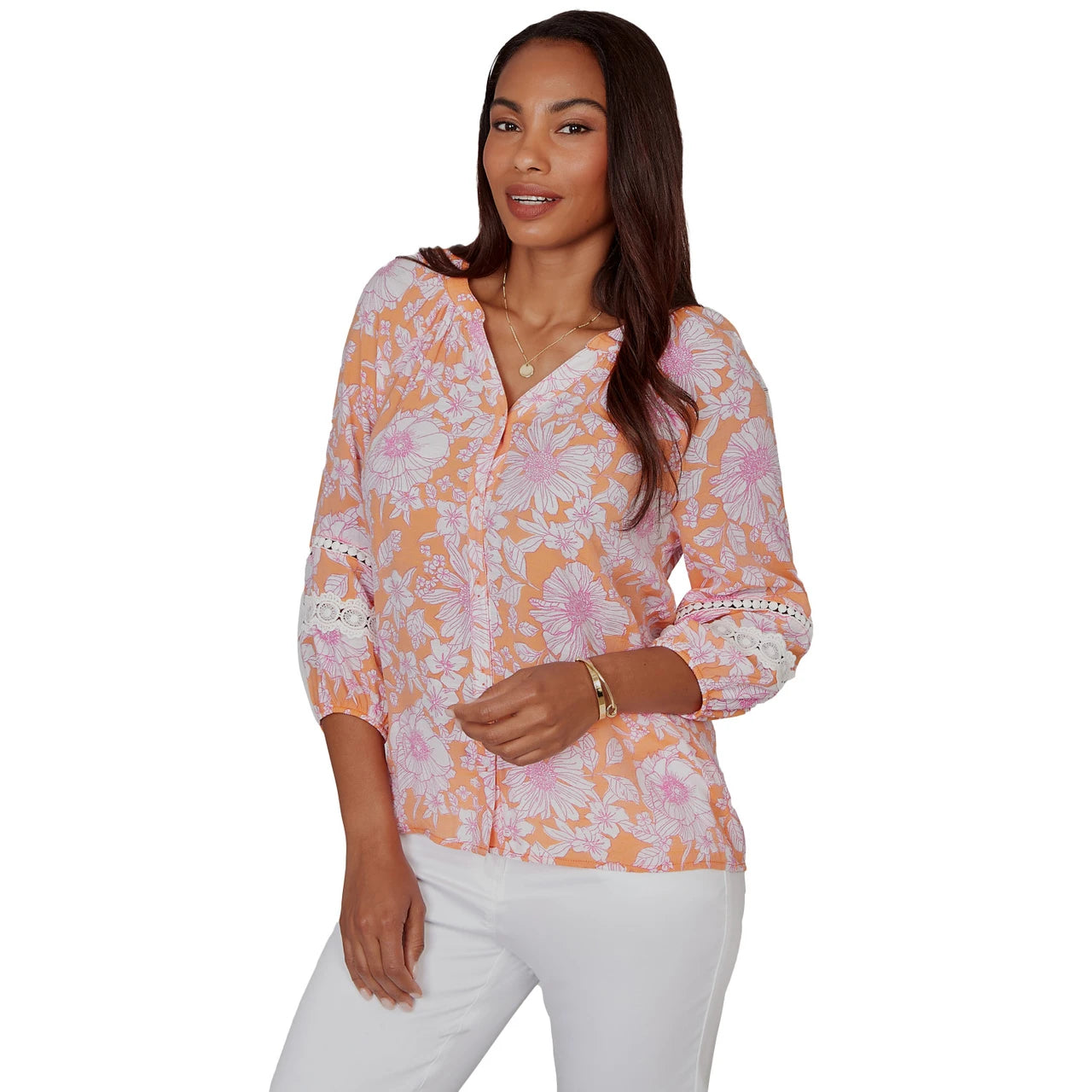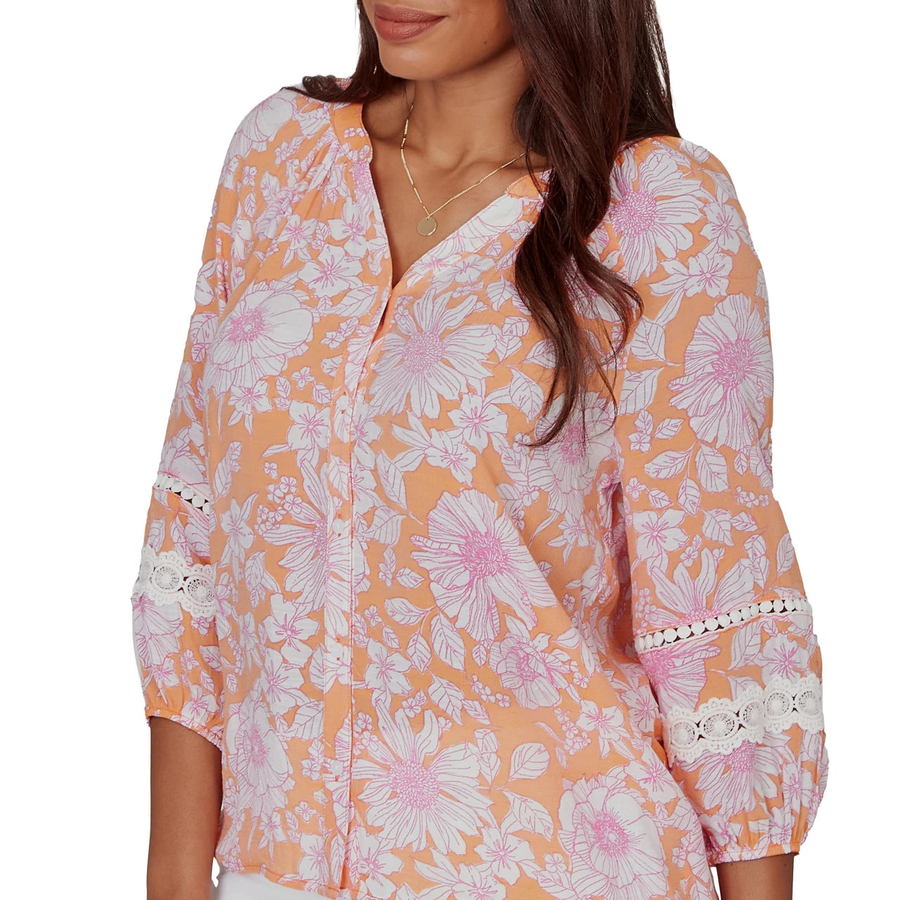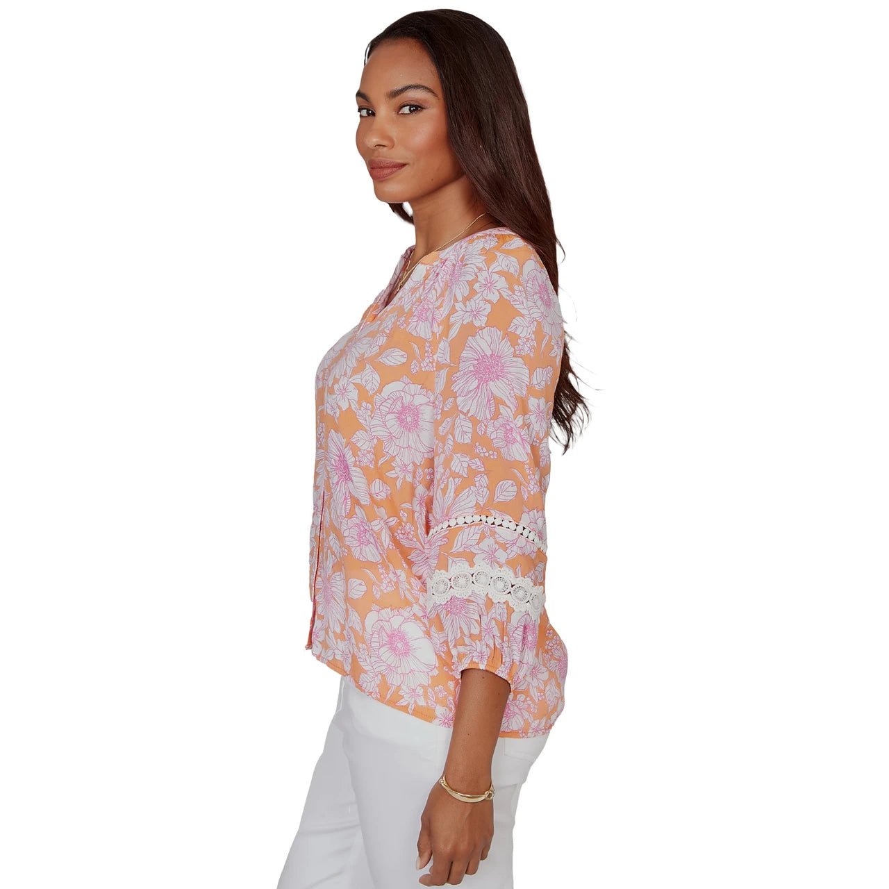 Women's Tropical Floral Trim Detail Top - 75542