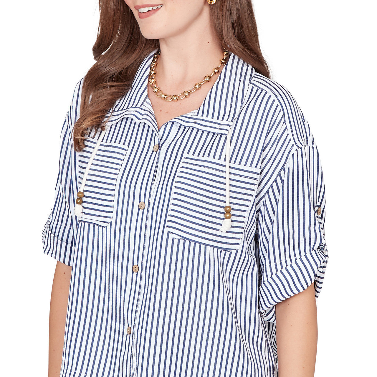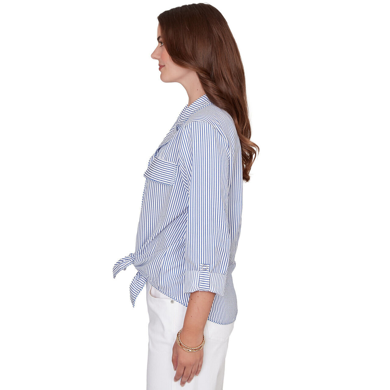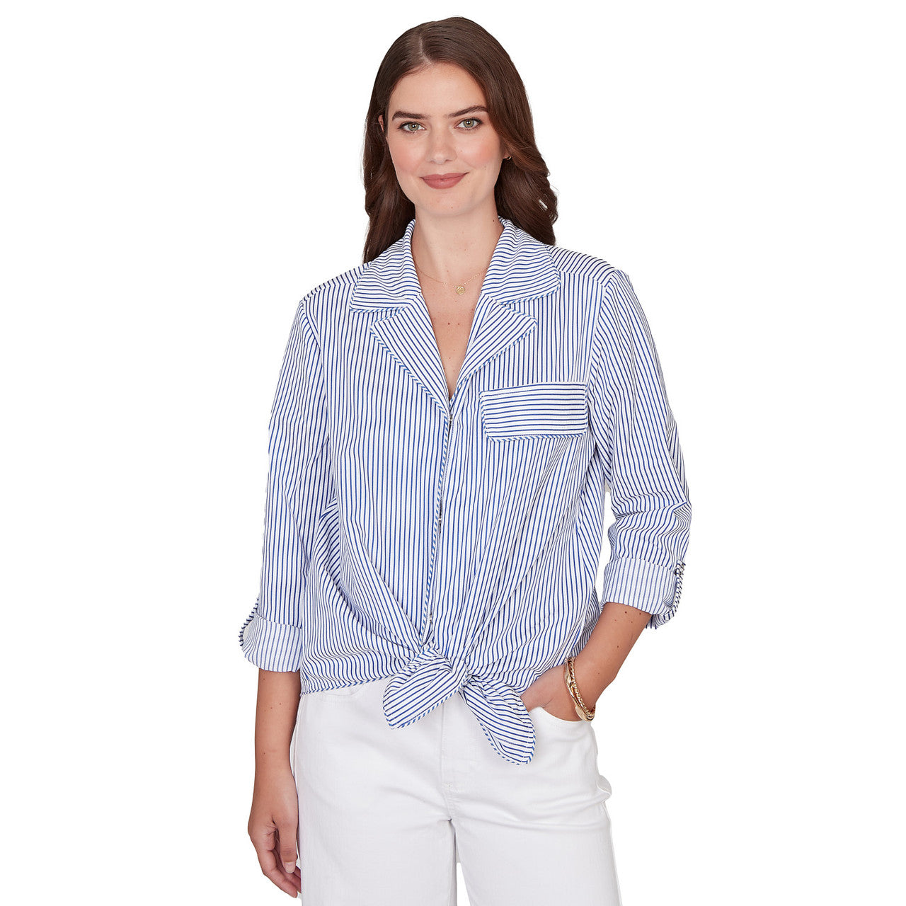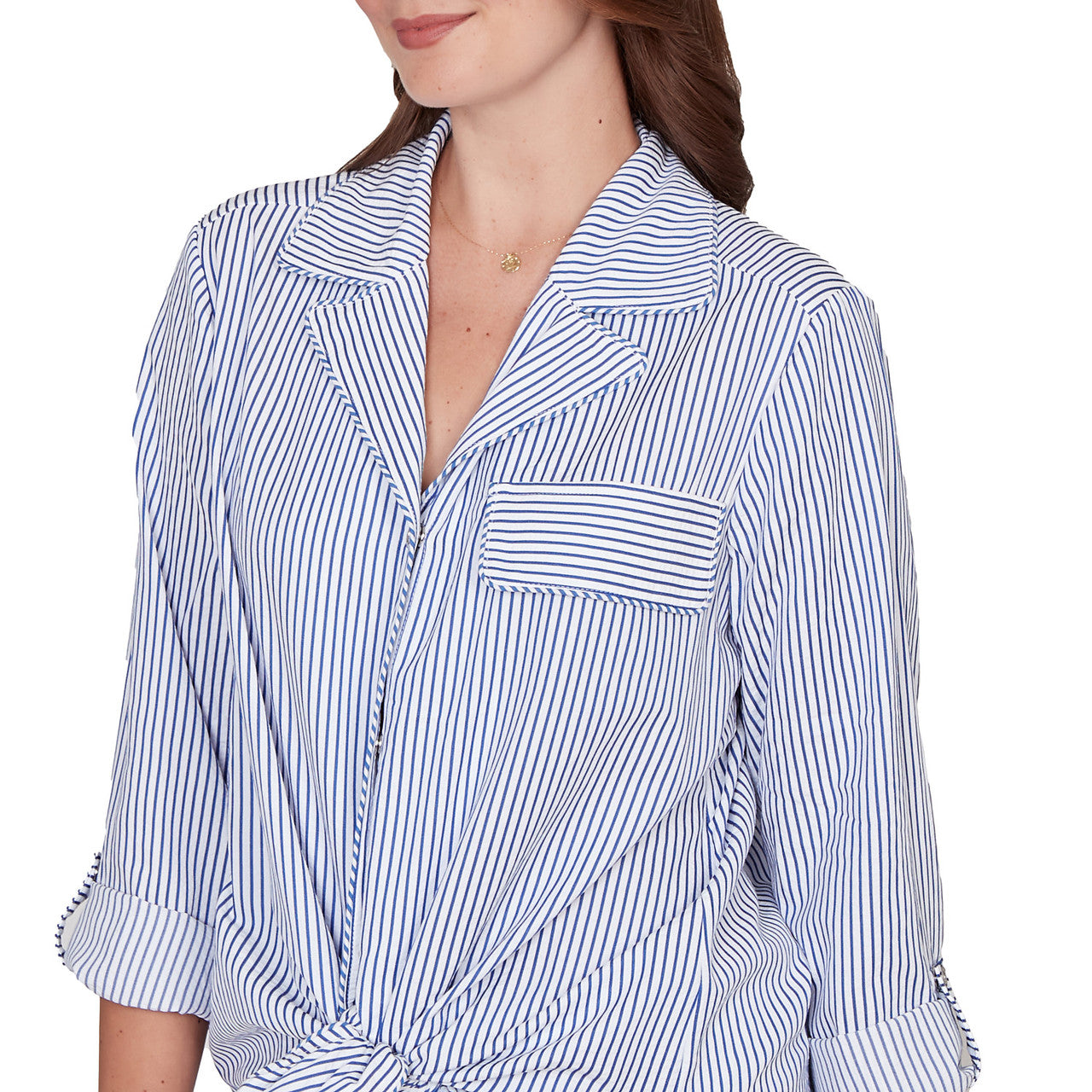 Women's Snap Front Tie Hem Pucker Stripe Top - 78441