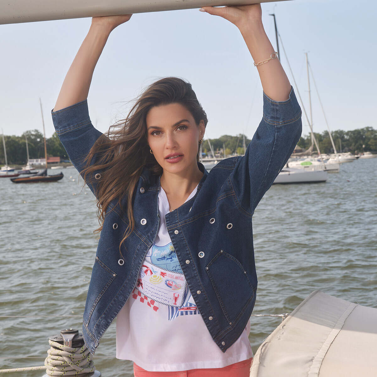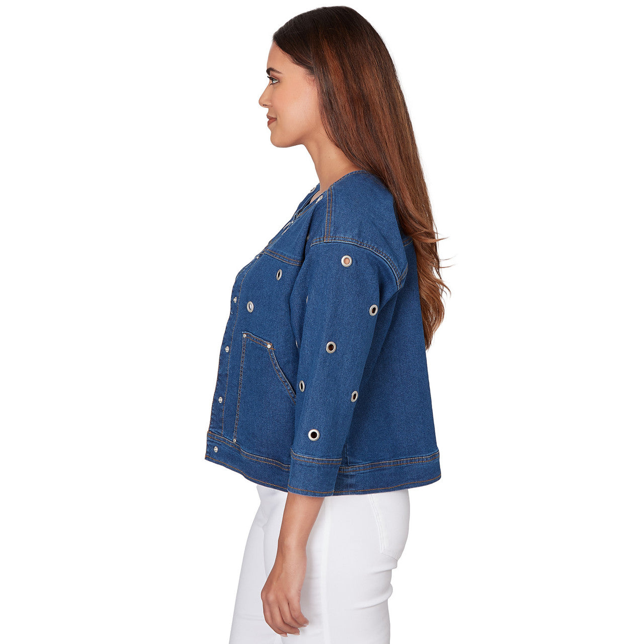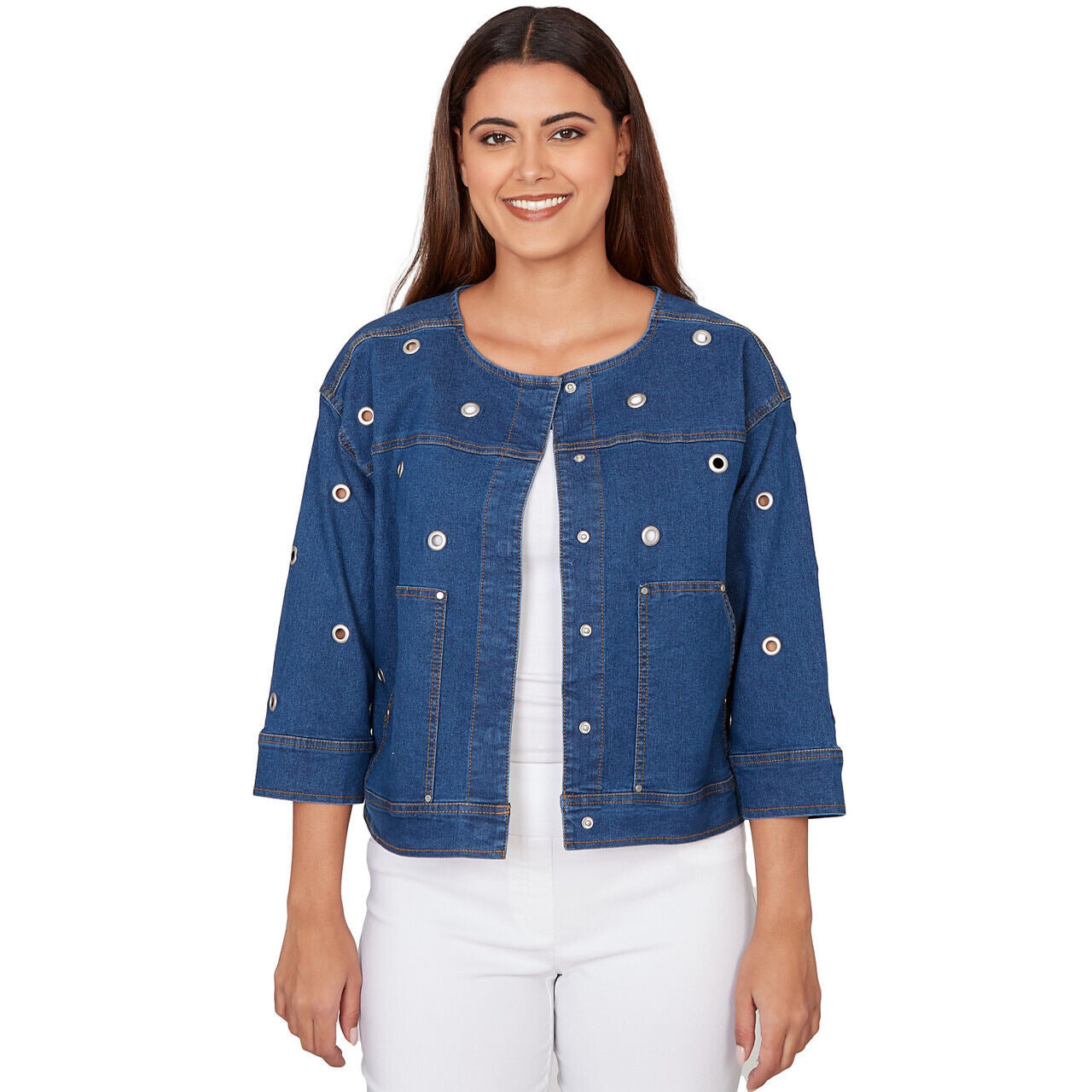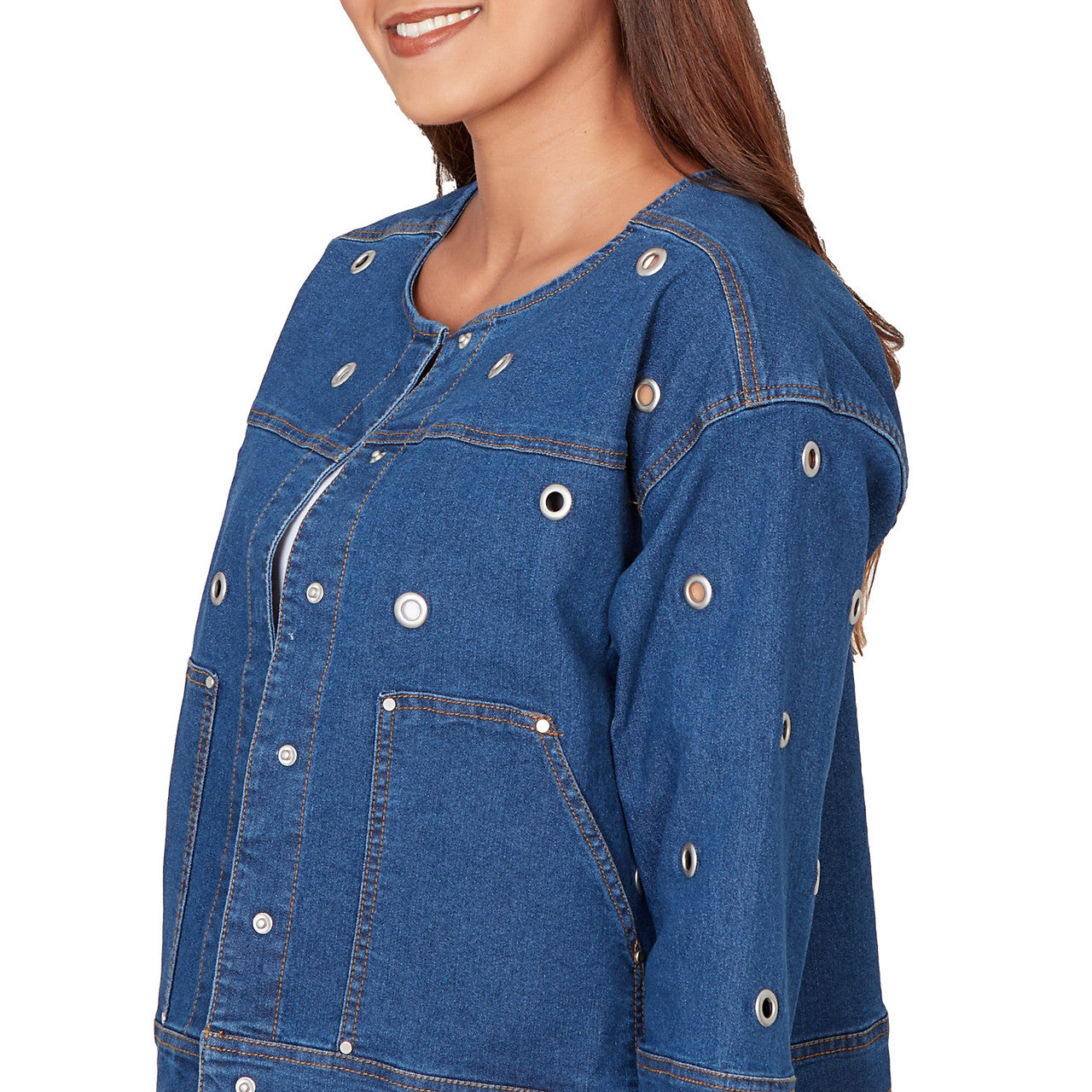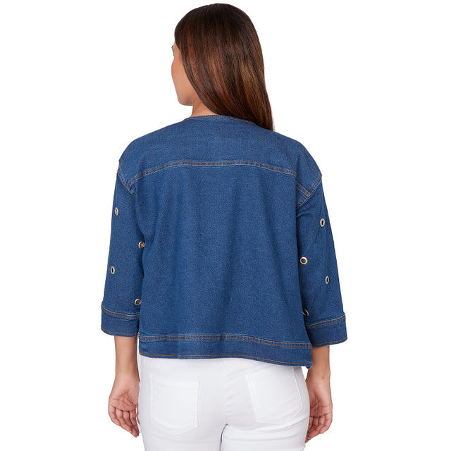 Women's Grommet Detail Stretch Denim Jacket - 78431