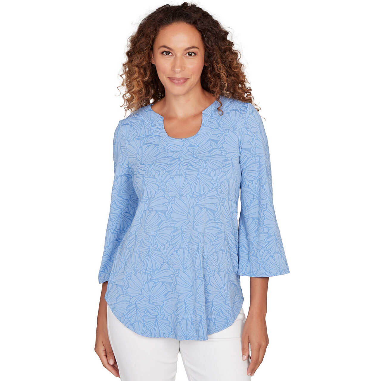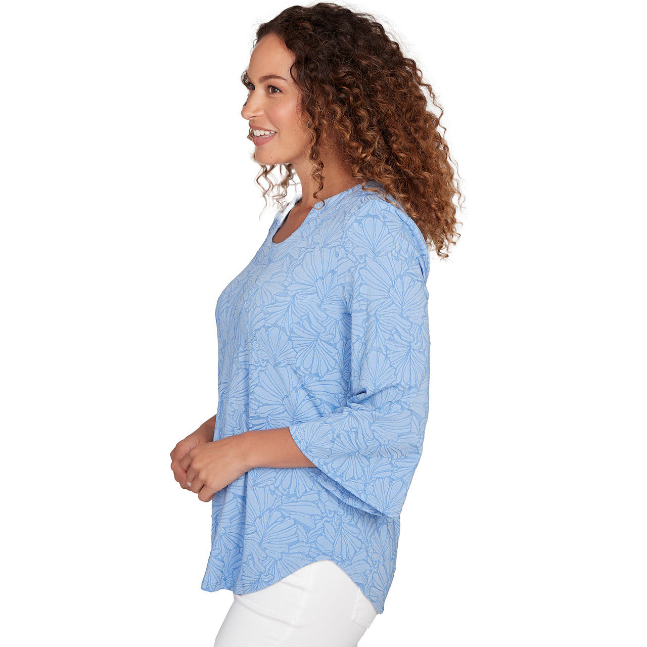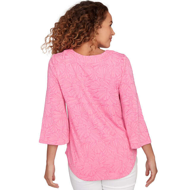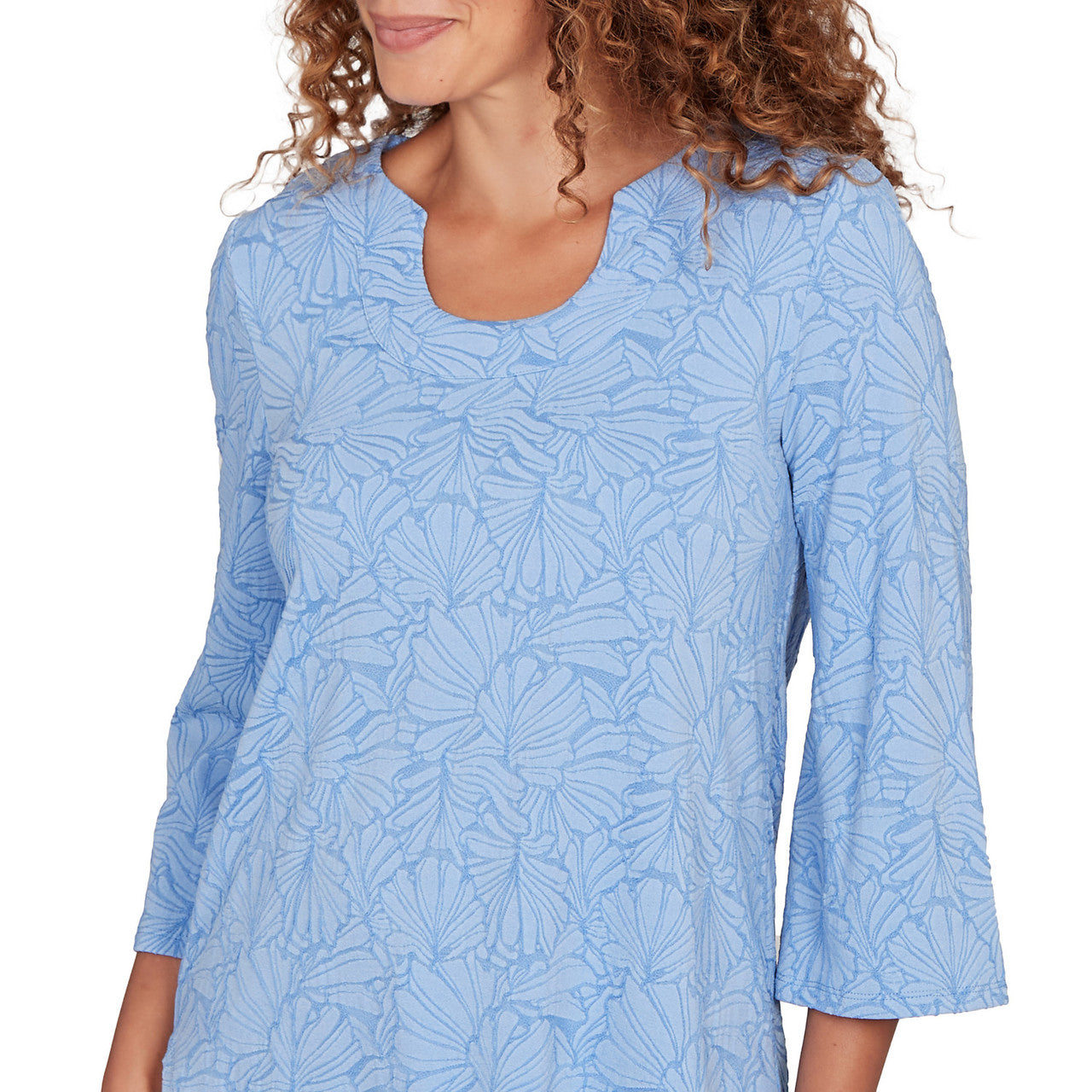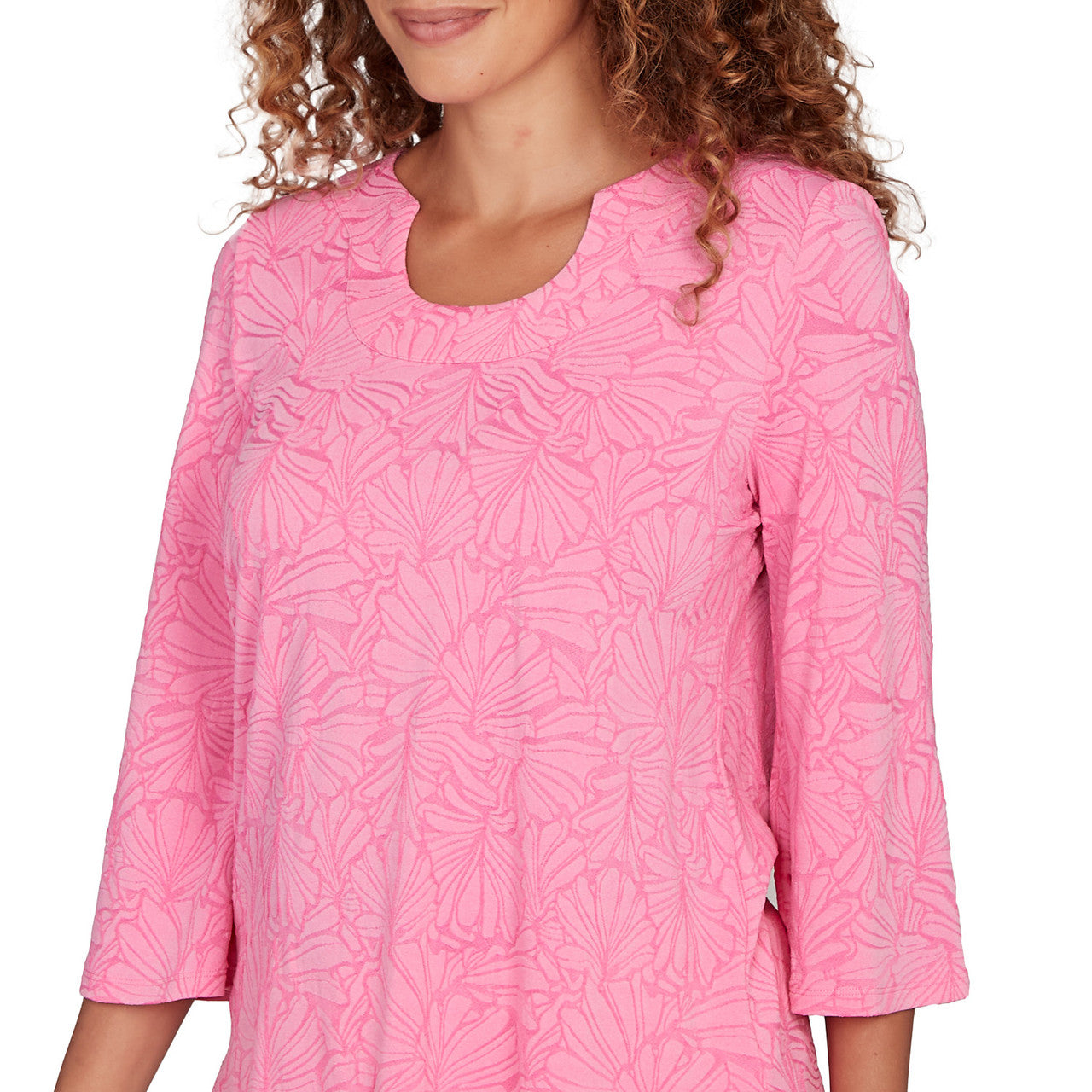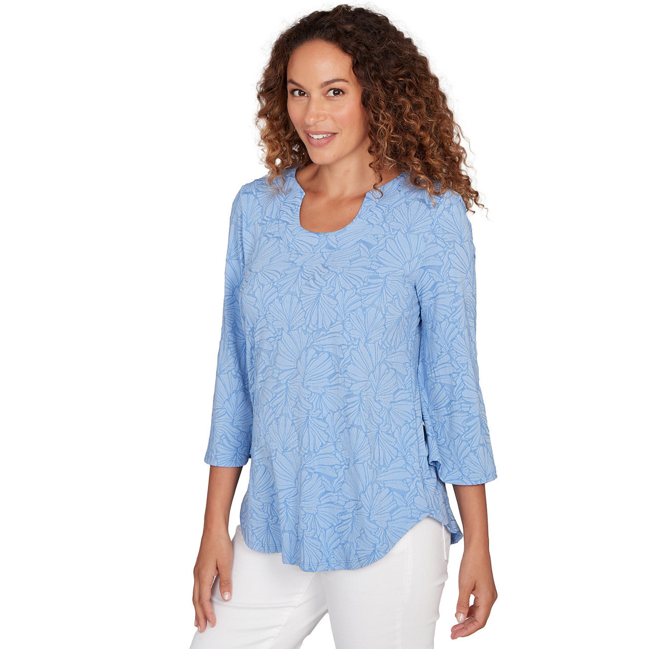 Women's Horseshoe Neck Solid Floral Jacquard Top - 81453R