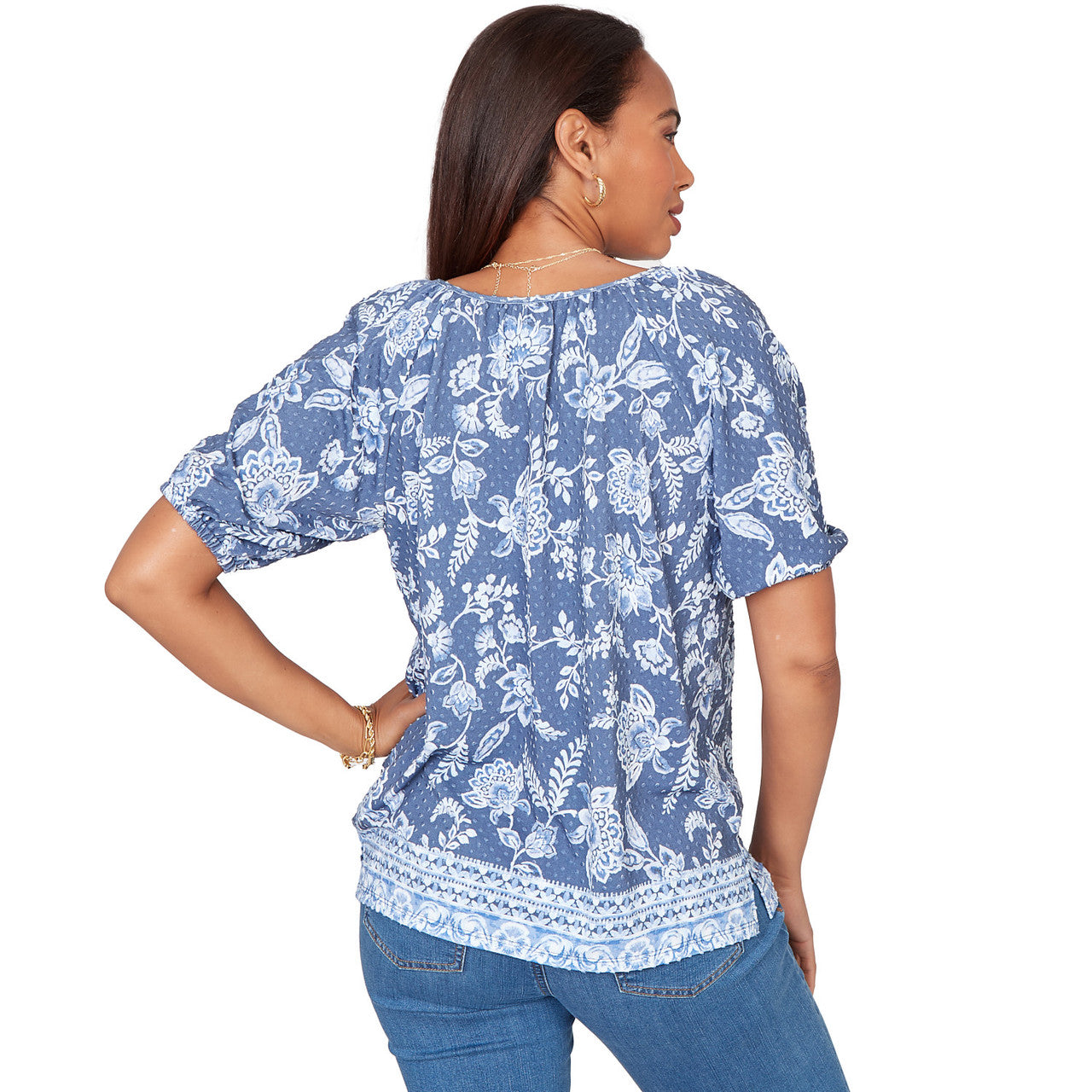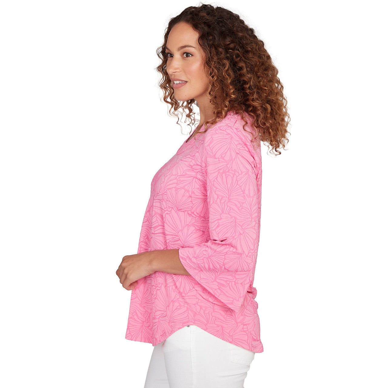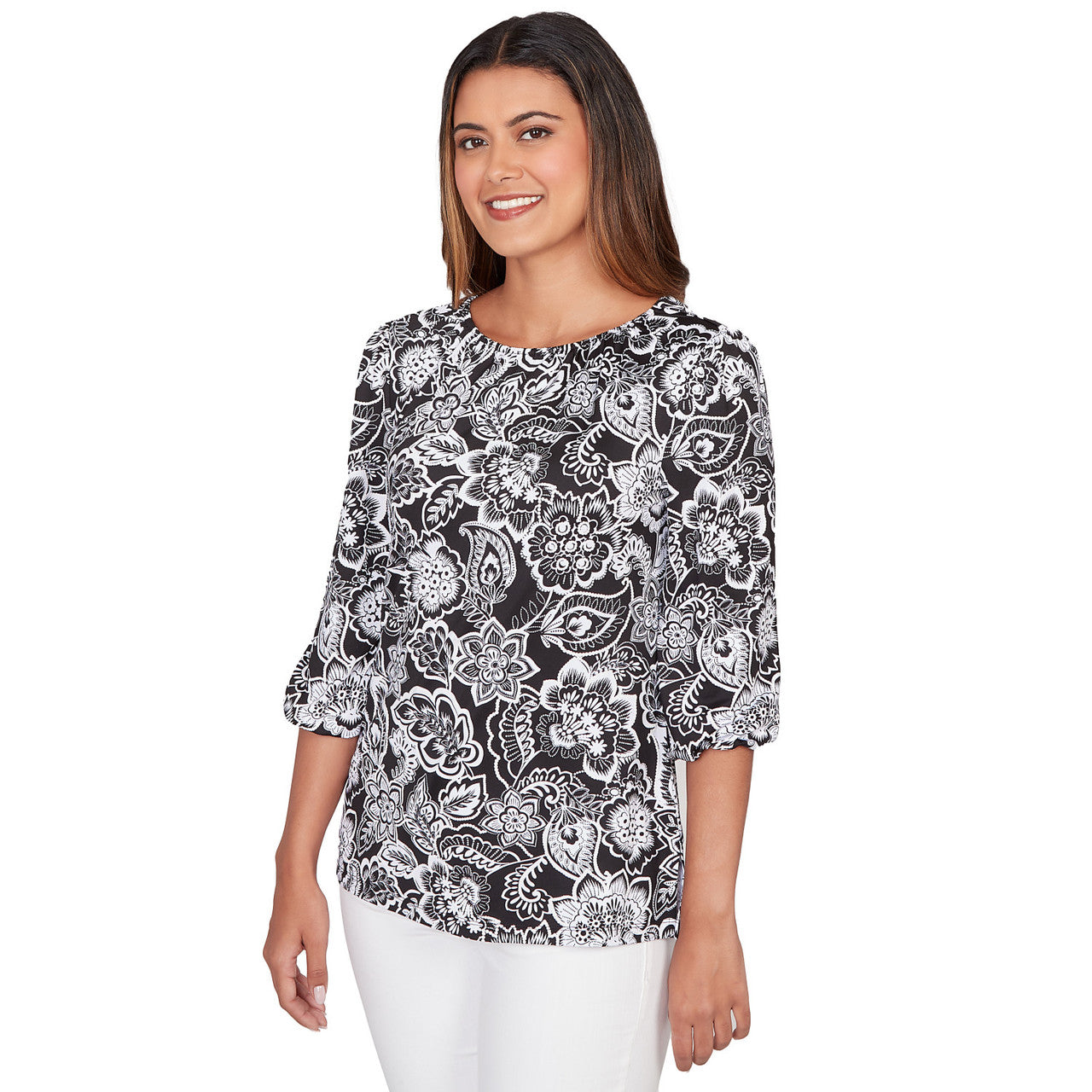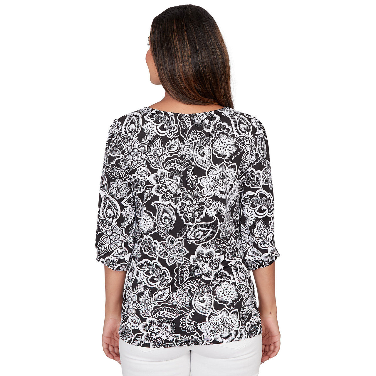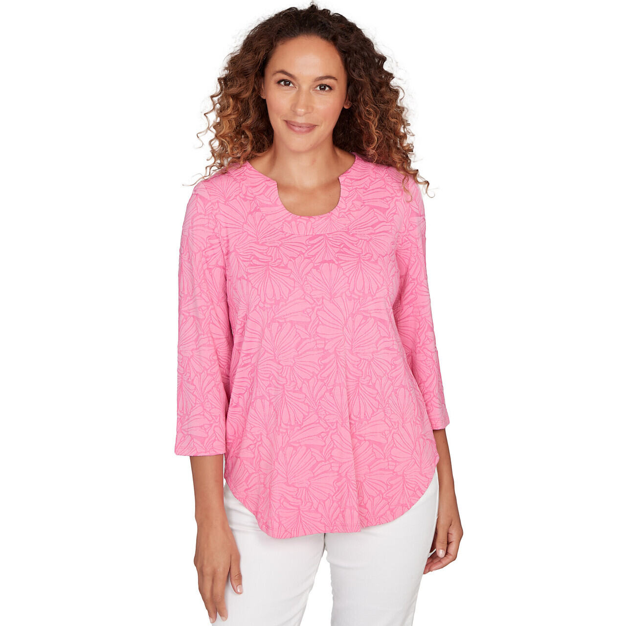 Women's Horseshoe Neck Solid Floral Jacquard Top - 81453R
