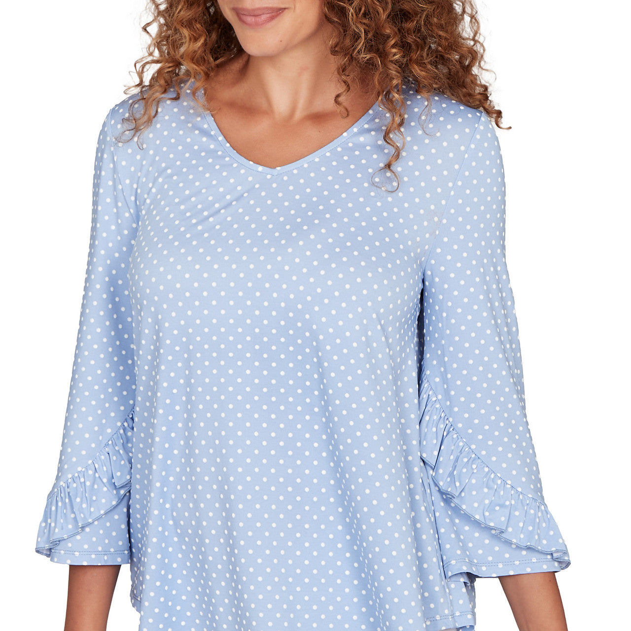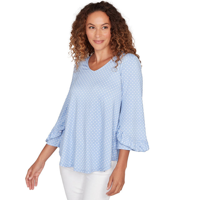 Women's V-Neck Polka Dot Puff Print Knit Top - 81451