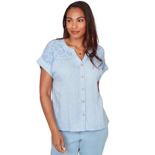 Renaissance Romance Cotton Eyelet Sleeve Top - 74550