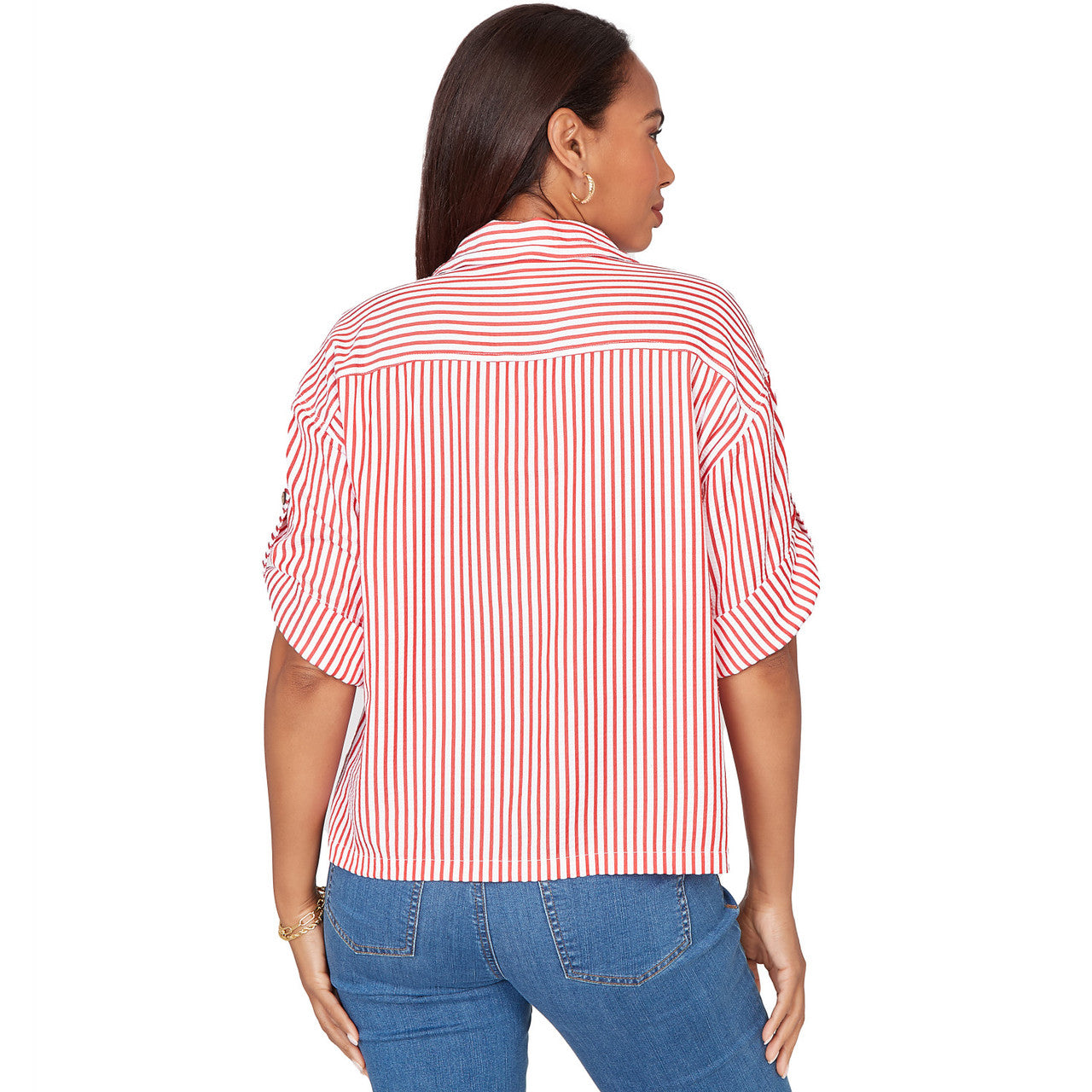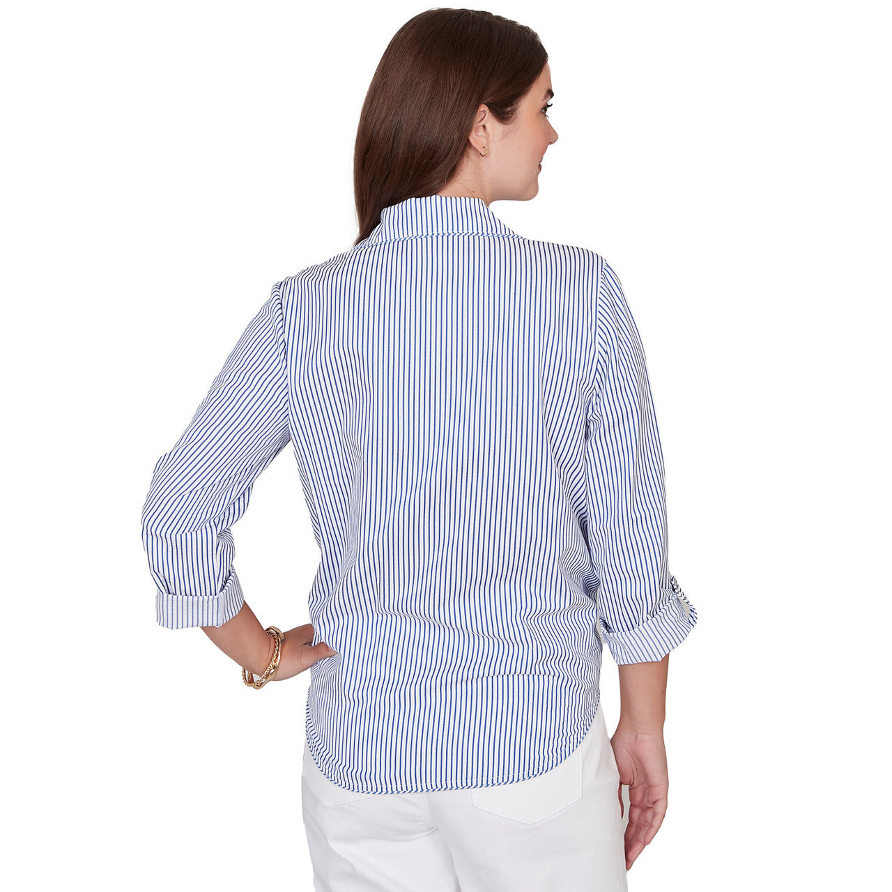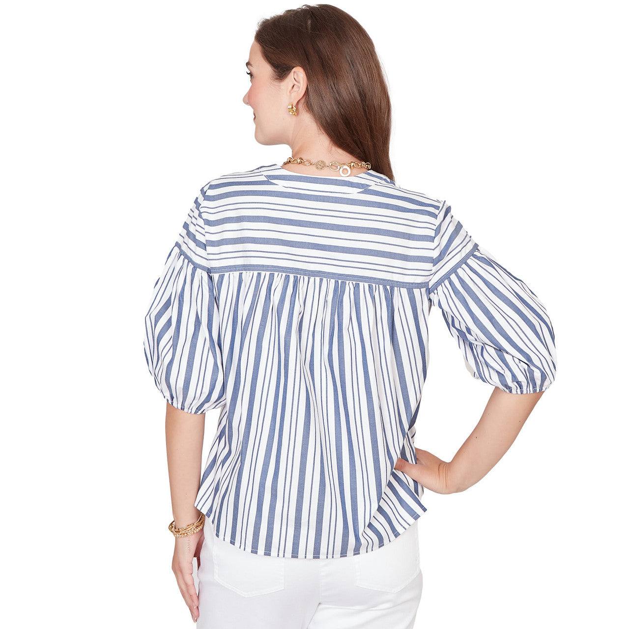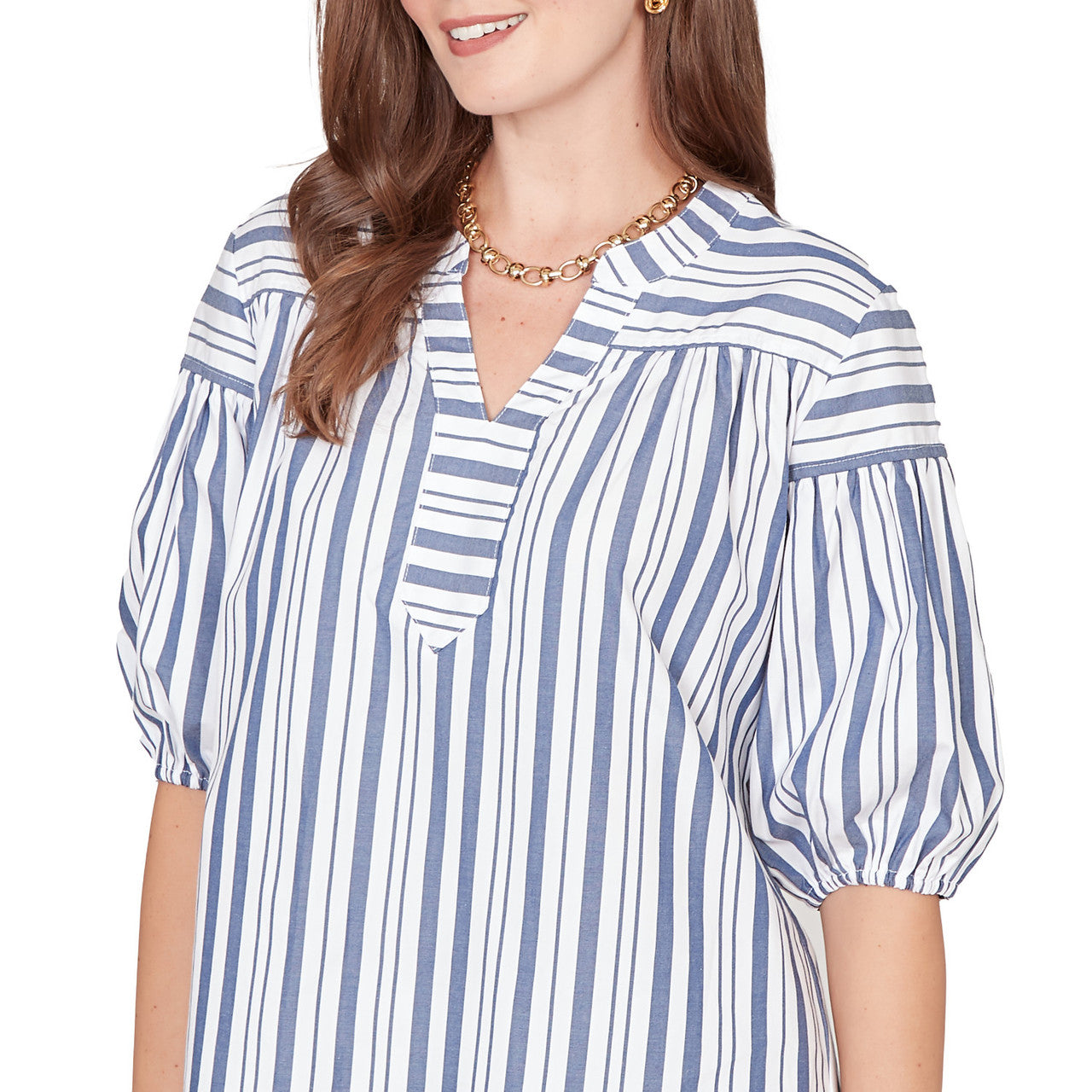 Women's Striped Cotton Poplin Elastic Cuff Top - 76578