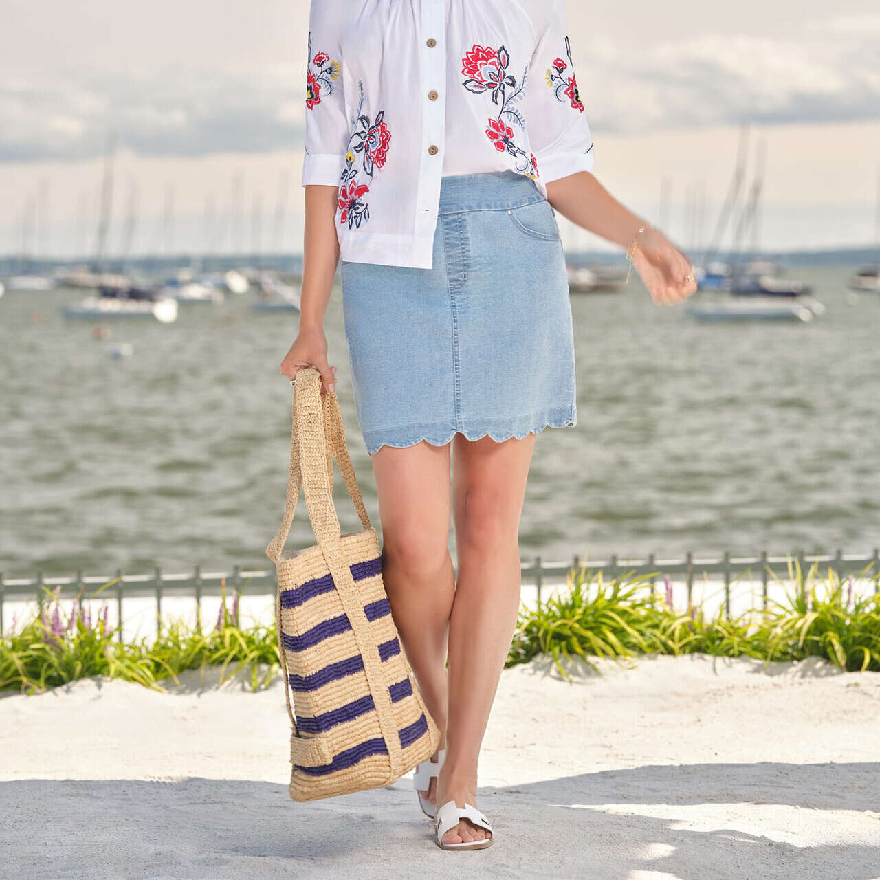 Women's Scalloped Hem Stretch Denim Skort - 76522