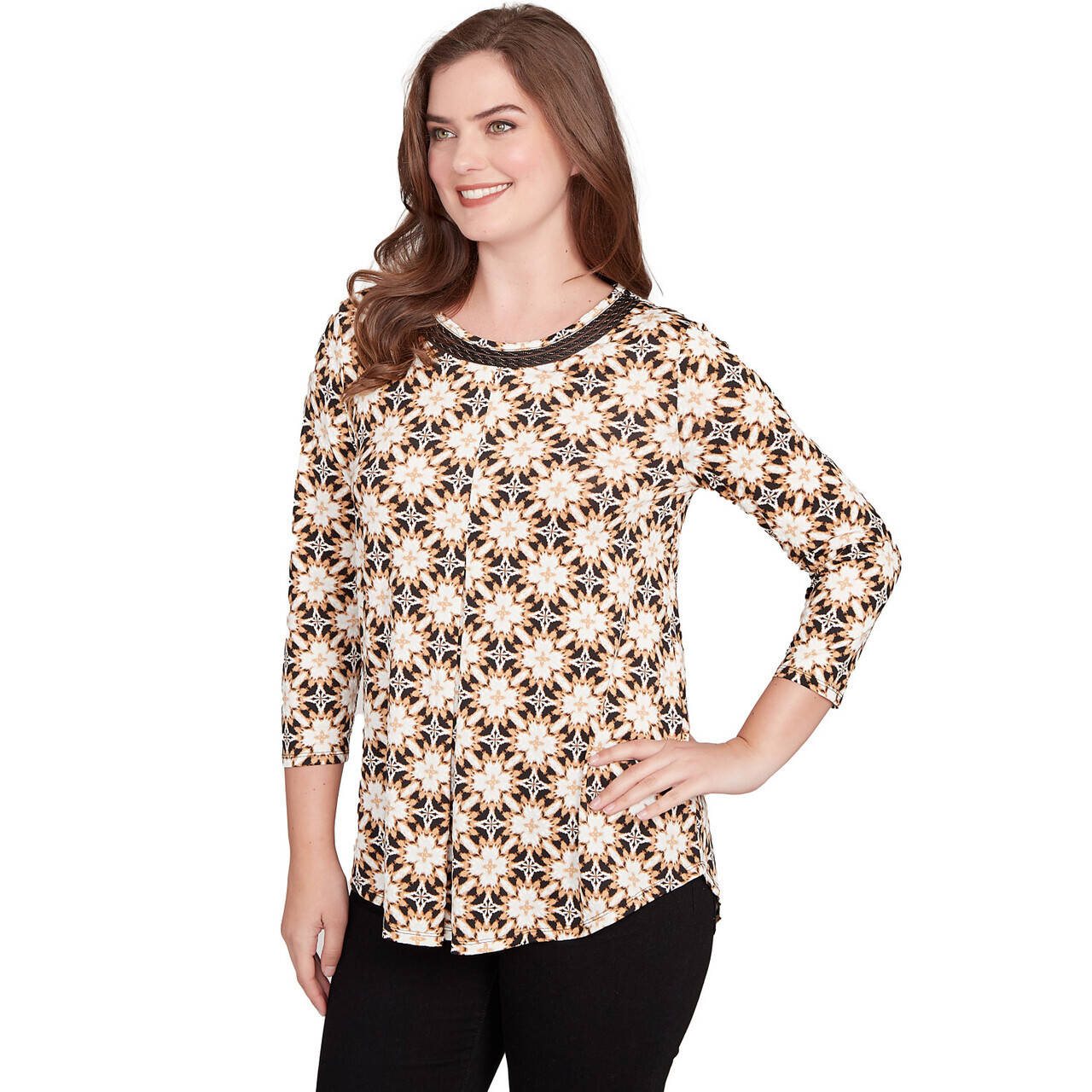 Women's Scalloped Jacquard Knit Top - 34155