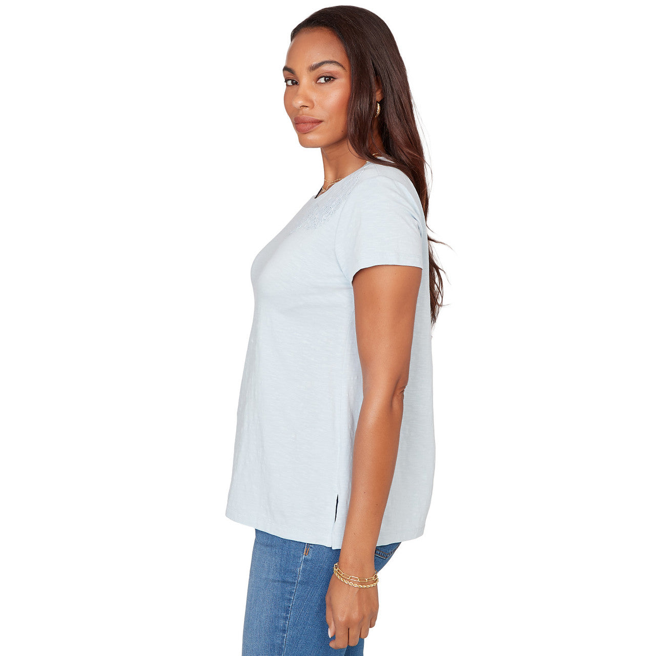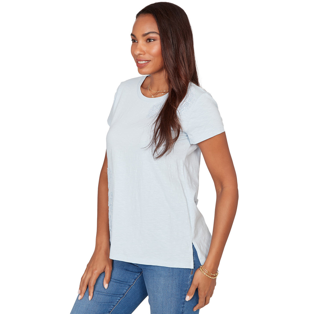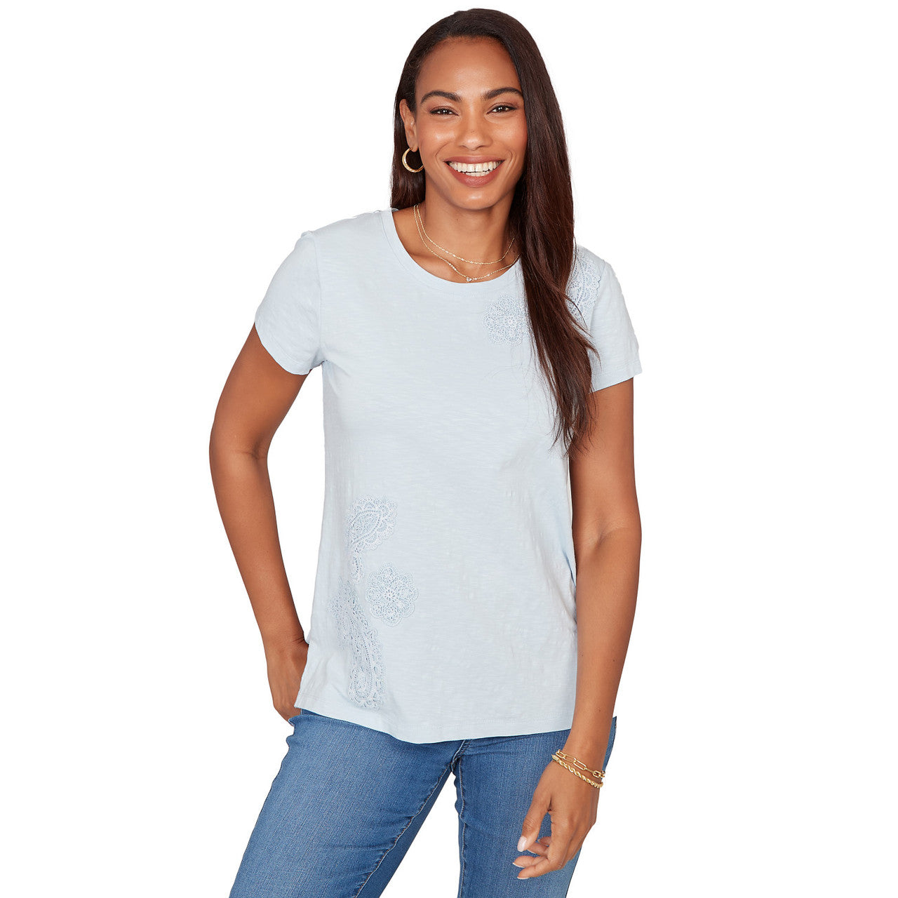 Women's Embroidered Sleeve Solid Tee - 38454