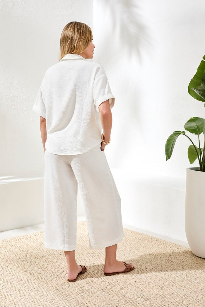 Textured Linen Flowy Wide Leg Pants With Elastic Waist - Gauva Blush - 60920-5400