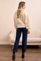 French Terry Embroidered Drop Shoulder Crew Neck Top - 23370-8327