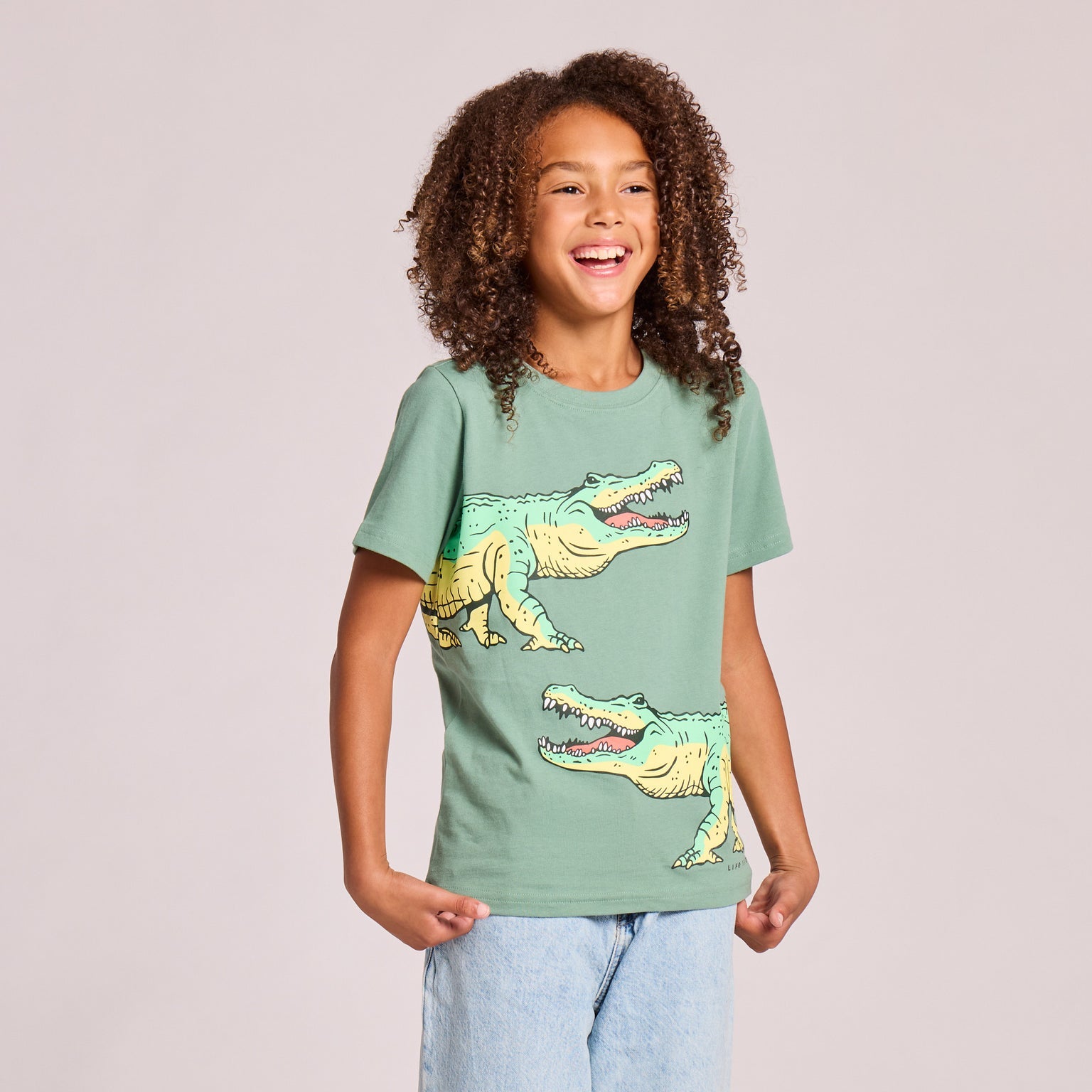 Kids Fierce Alligator Short Sleeve Crusher Tee - Granite Green - 153877