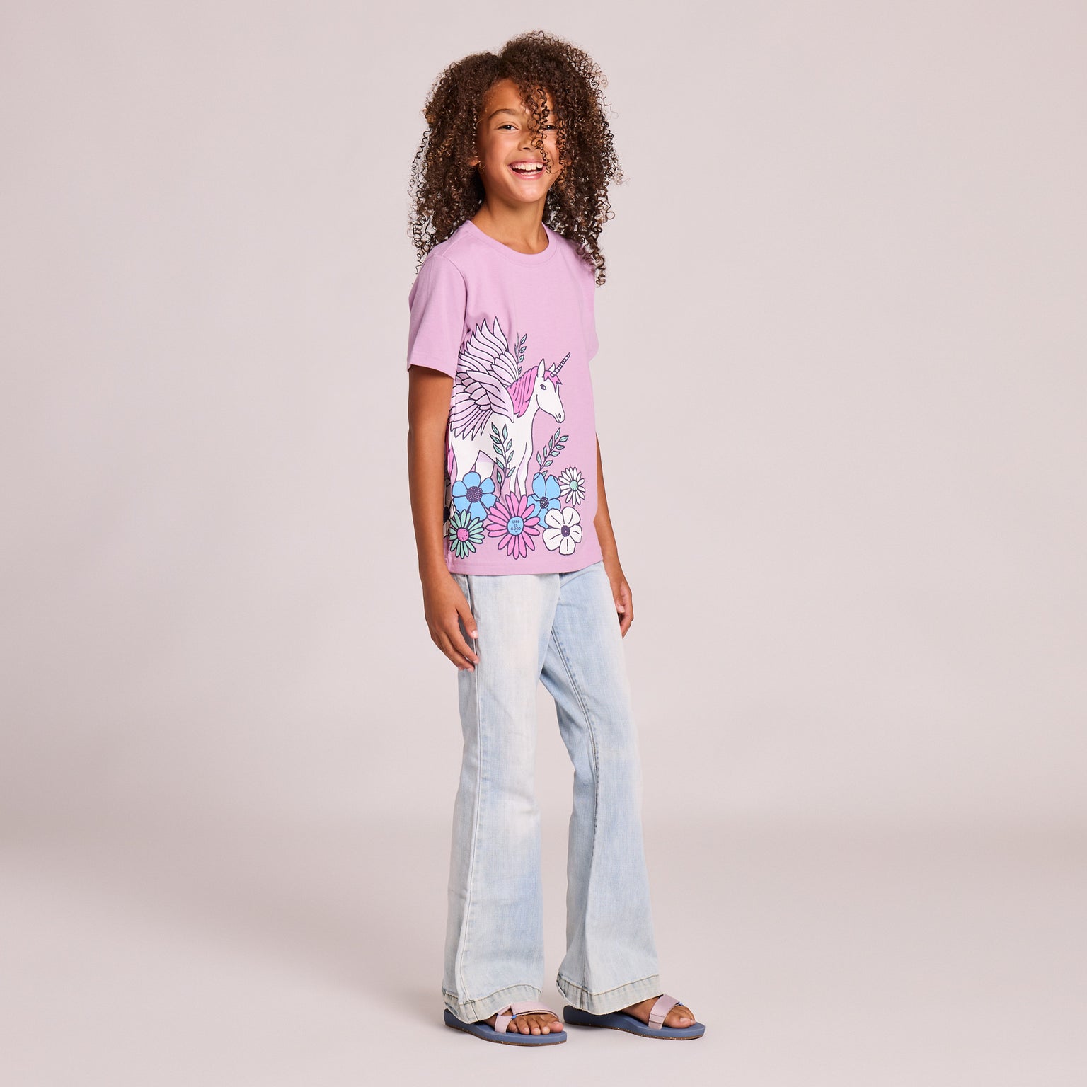 Kids Unicorn and Flowers Short Sleeve Crusher Tee - Violet Purple - 153878