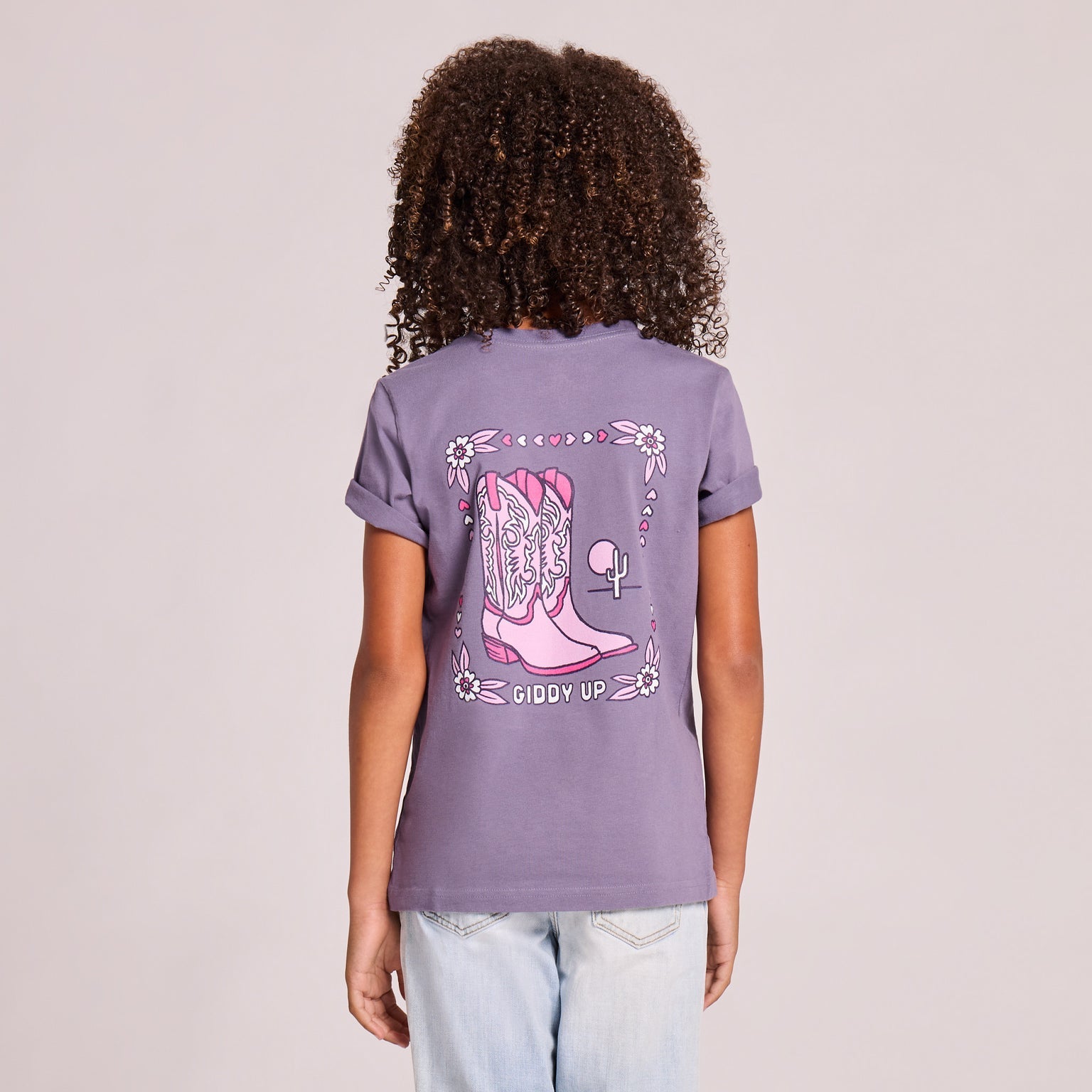 Kids Giddy Up Flora Boots Short Sleeve Crusher Tee - Dusk Purple - 153885