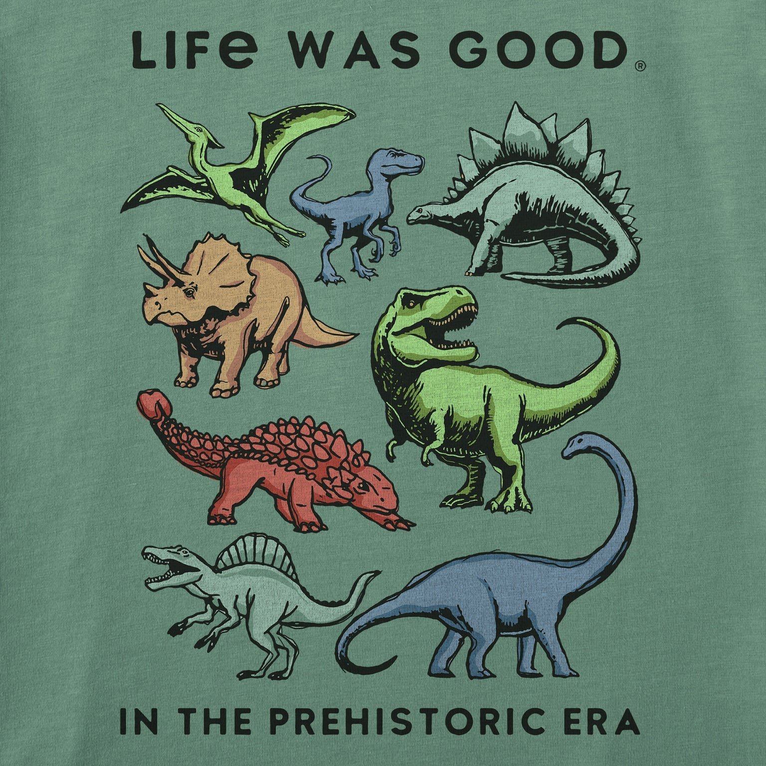 Kids In the Prehistoric Era Dinosaurs Short Sleeve Crusher Tee - Granite Green - 153901
