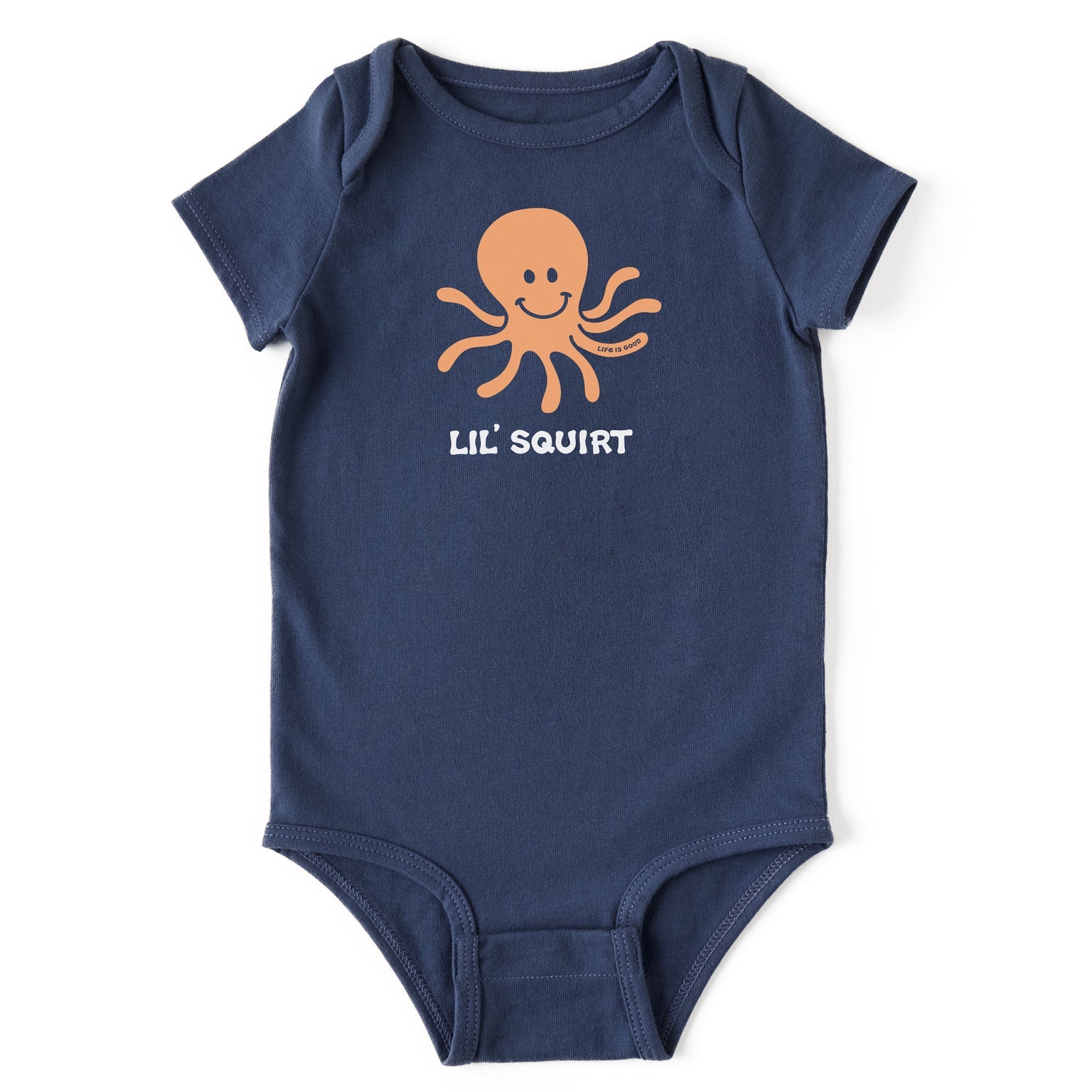 Baby Lil' Squirt Octopus Short Sleeve Crusher Baby Bodysuit - Darkest Blue - 153971