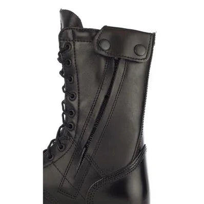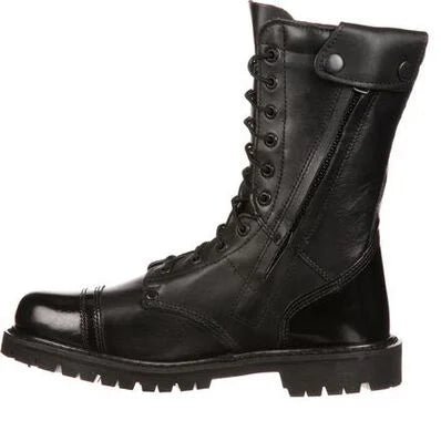 The exterior on this Rocky Men's Jump Boot has an adequate amount of durability and ruggedness so that it is able withstand the most unforgiving working conditions. The upper has been built from premium full-grain black leather. These 10-inch public service boots have a side zipper that aids in getting them on/off rapidly. In addition to these features, there is a polishable toe so that you can keep these boots looking like they are in tiptop shape.