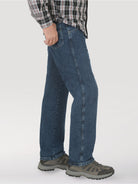 The Wrangler Rugged Wear® collection combines classic denim styles with hardworking features designed to help you get through anything. Made for maximum comfort and durability, the Wrangler Rugged Wear Performance Series Relaxed Fit Jean features a U-shape crotch construction that prevents the denim from digging into the skin. Plus, an elastic waistband offers plenty of comfort where it matters most. These relaxed fit jeans offer just enough room and just enough stretch to keep you moving freely all day long. Plus, the pockets are extra deep and feature easy-entry technology for added convenience you can count on. 'W' stitched back pockets are a reminder that the Wrangler legacy has your back.
