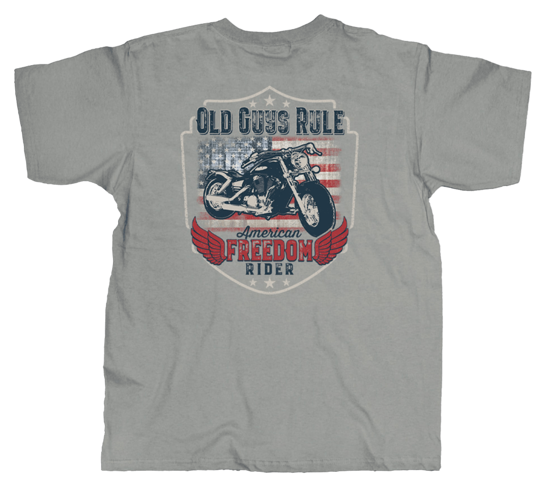 The Old Guys Rule® Freedom Rider Short-Sleeve T-Shirt for Men perfectly reflects the style of men who didn't just get older; they became wiser and more confident. This cool, comfortable Old Guys Rule T-shirt brings style and humor, and it makes a lasting impression about the guy wearing it. The sleek graphics speak to your interests while flaunting that "better with age" mantra. You've worked hard. Now it's time to relax harder. An Old Guys Rule shirt makes the ultimate gift for any cool old guy, especially yourself. Soft, durable 100% cotton with a crew neck for a great fit and sharp looks all day. Machine wash. Imported.