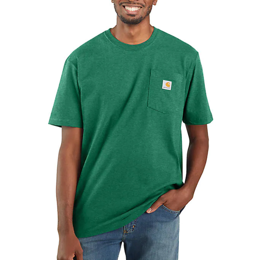 Carhartt pocket t-shirt debuted in 1992, and its rugged cotton design and clean looks made it a fast favorite among the hard-working folks who pulled it on. Though decades and trends have come and gone, there's a reason the K87 remains a classic. This men's t-shirt is made with heavyweight cotton built to handle tough days on the job. It has an loose fit that gives you room to move and a soft feel that only gets better with time.