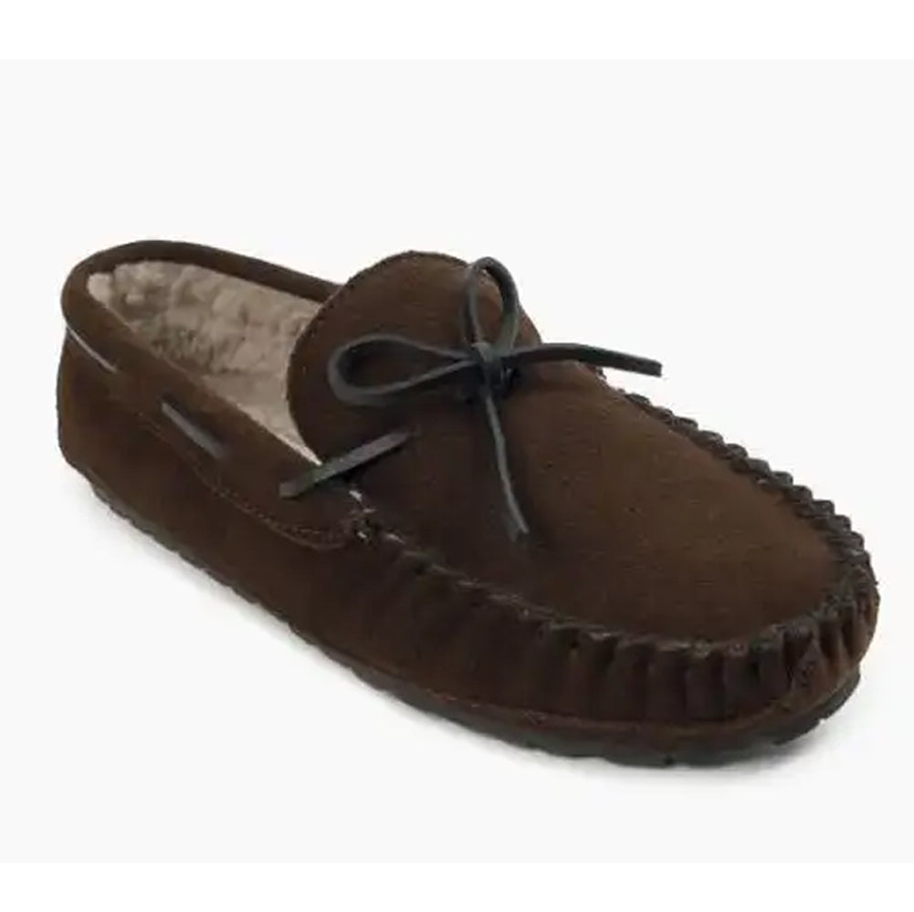A perfect companion for lounging around, these slippers are ultra-comfortable. Plush pile lining keeps things soft and warm inside. Made by hand from the highest-quality suede leather, these durable moccasin slippers feature a thin rubber sole and make a great gift for men.