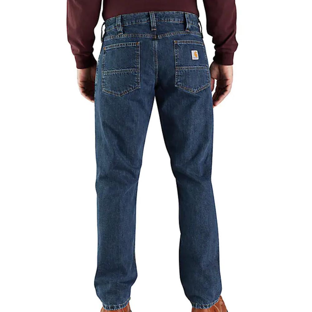 Carhartt Relaxed Fit Flannel-Lined 5-Pocket Jean for the job doesn't stop for cold weather. These men's flannel-lined jeans are built to take on low temperatures. A soft flannel lining adds warmth. Rugged, washed denim stands up to job site wear. Their relaxed fit offers a little extra room through the seat and thigh, with a straight leg opening that slides easily over boots.