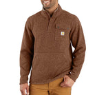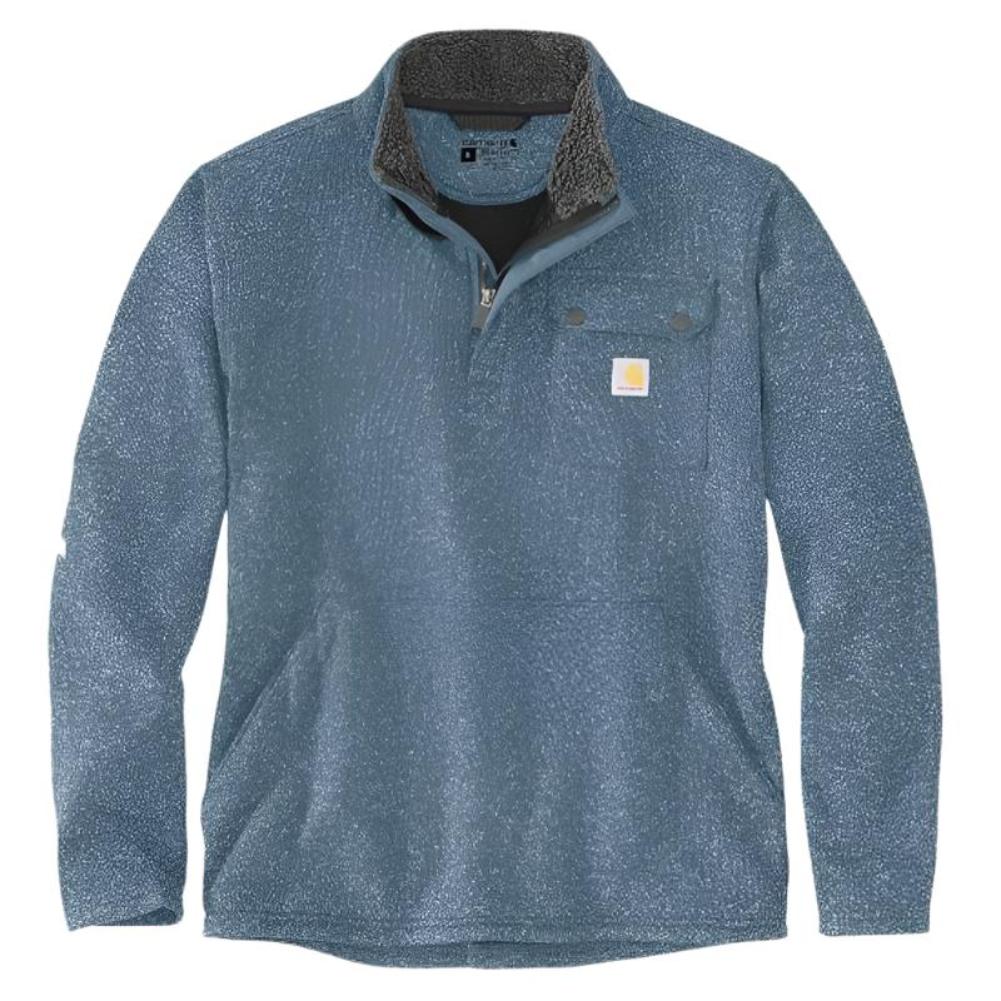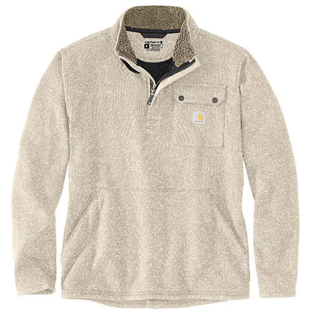 Stay warm when you're working outside. This men's Carhartt fleece sweater is your go-to when the temperatures drop. The collar is lined with sherpa fleece for an extra soft feel. The snap pocket secures essentials for the job ahead.
