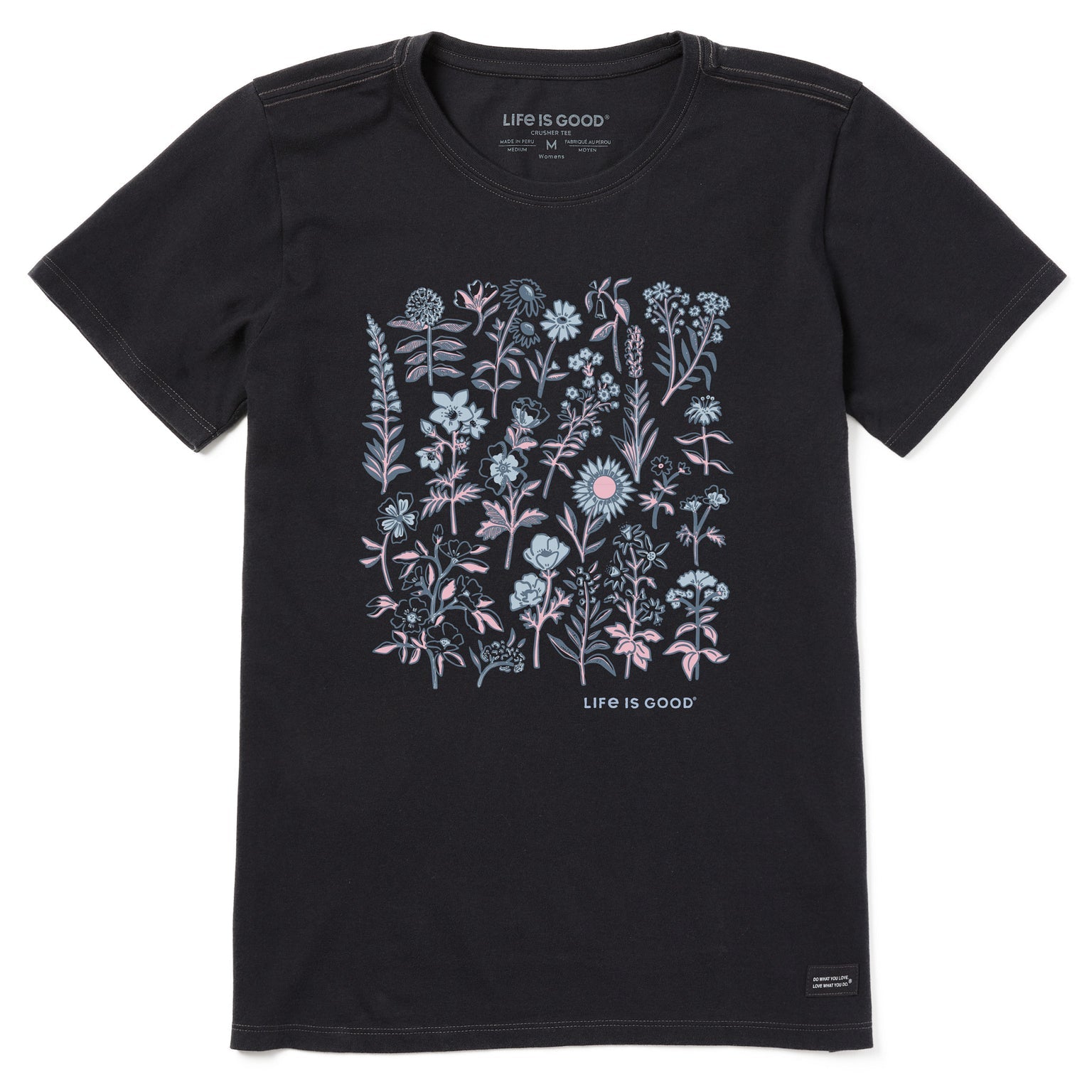 Women's Collection of Flowers Short Sleeve Crusher Tee - Faded Black - 153563