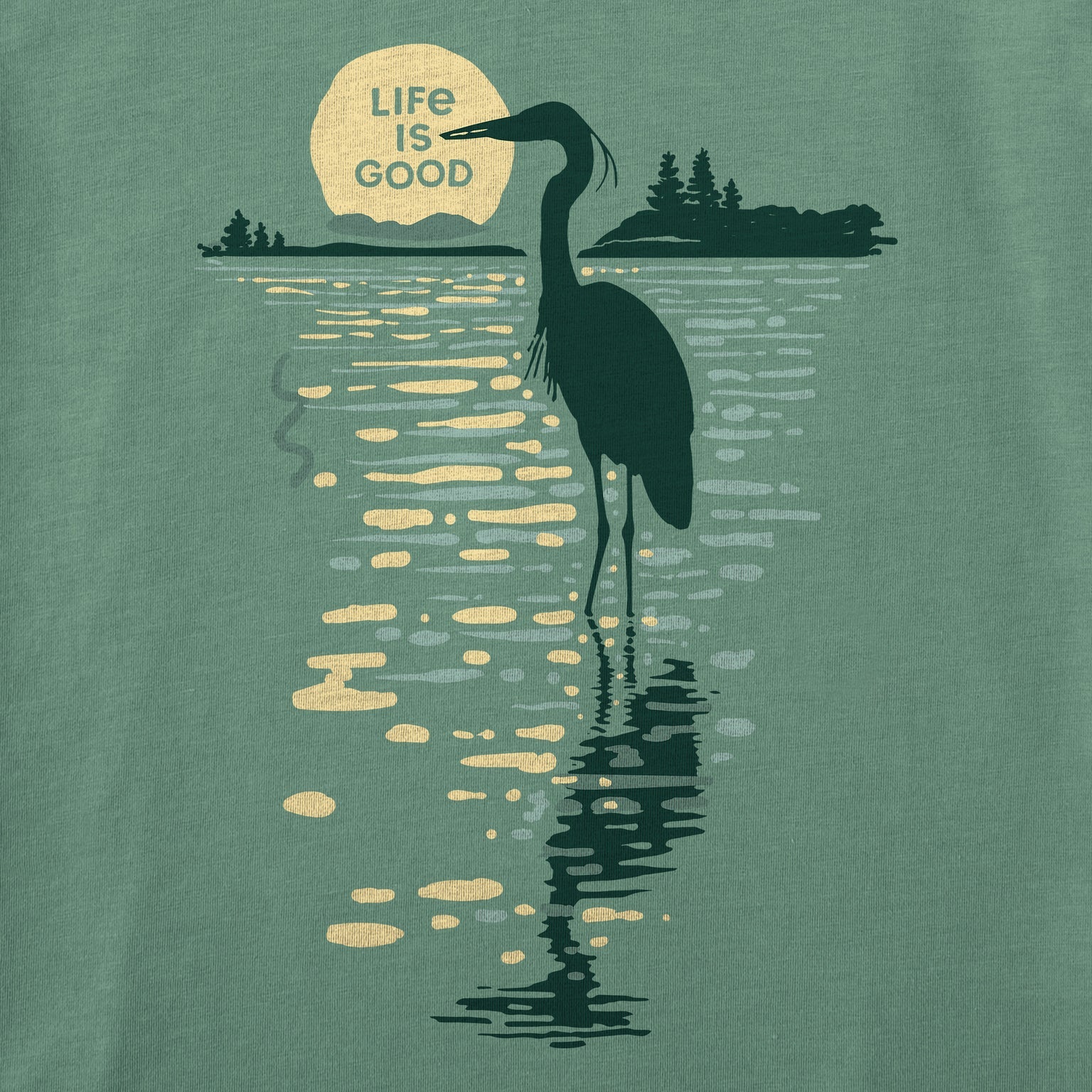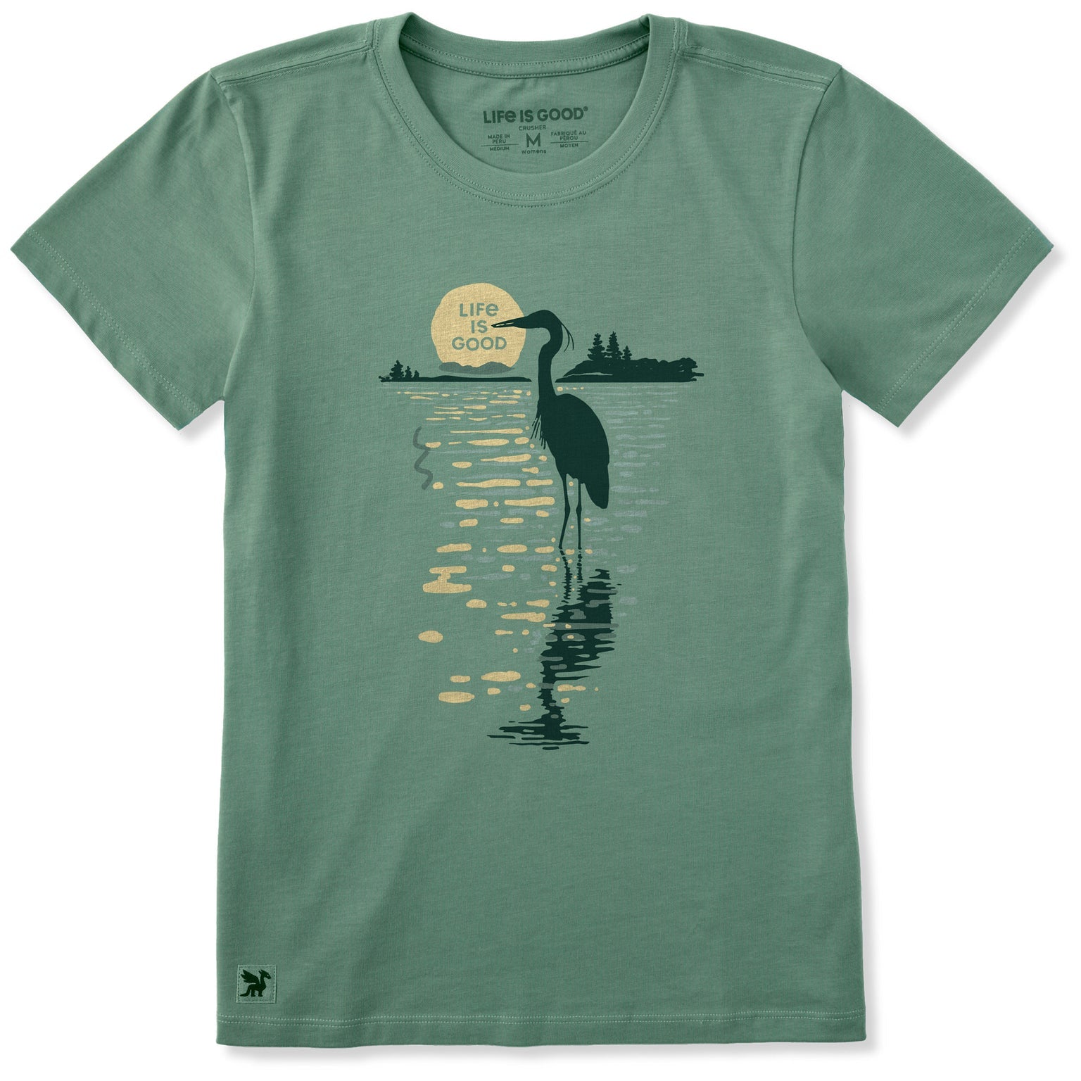 Women's Moonlit Heron Silhouette S/S Crusher Tee - Granite Green - 153569
