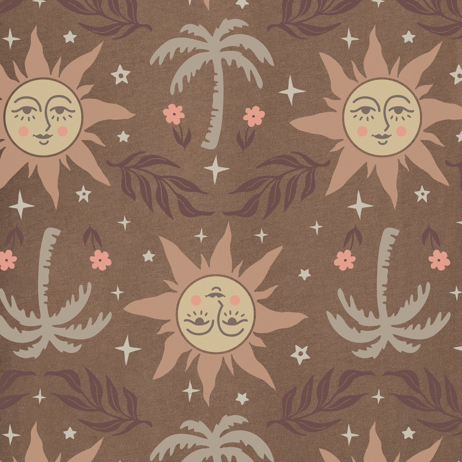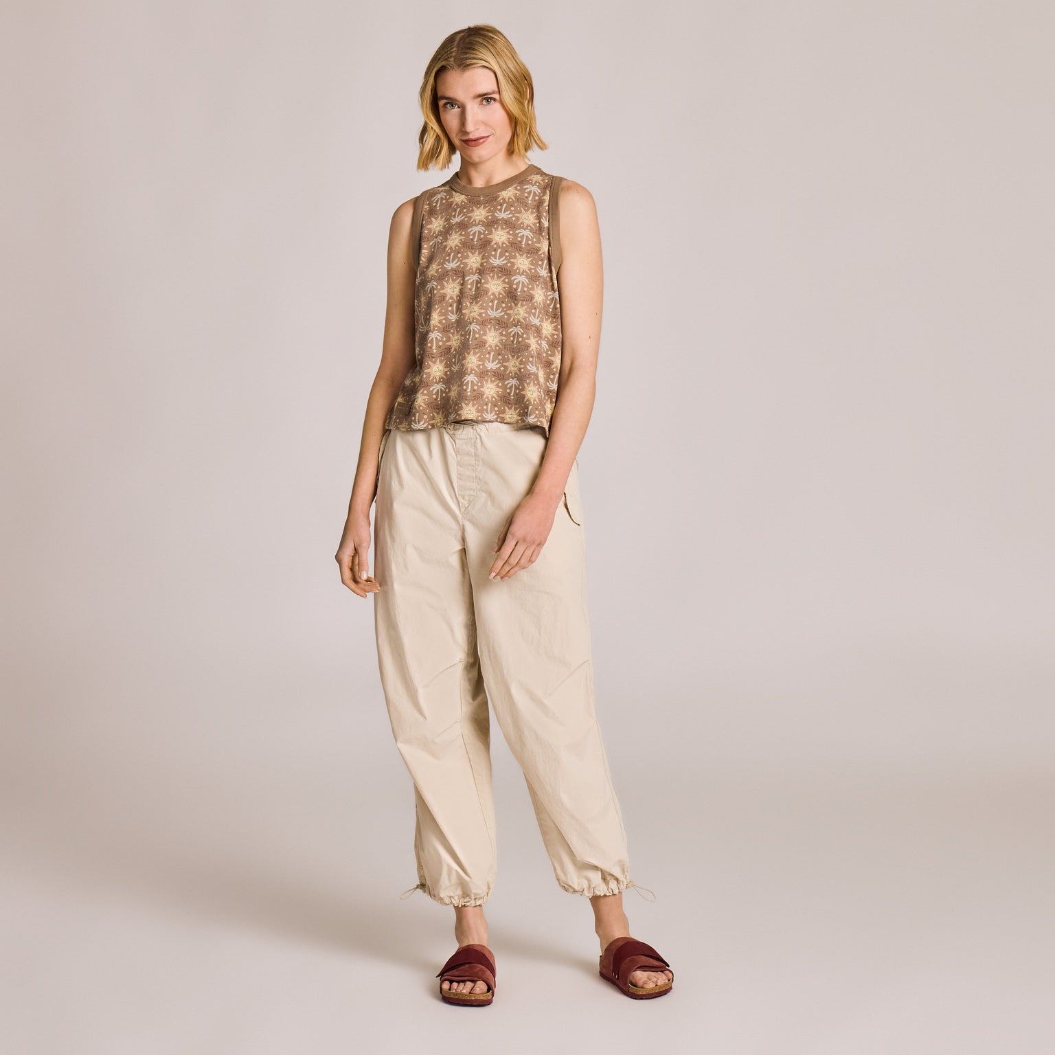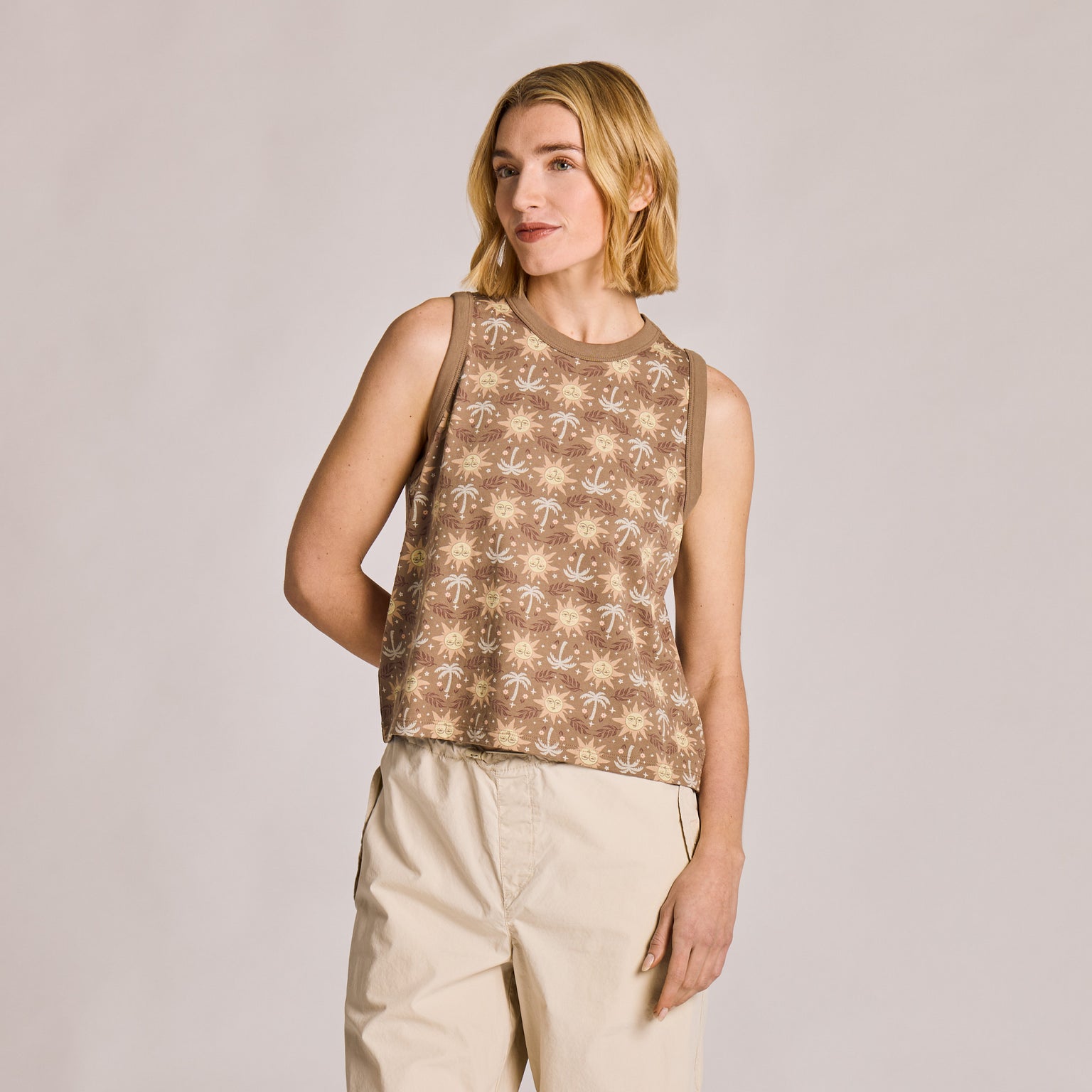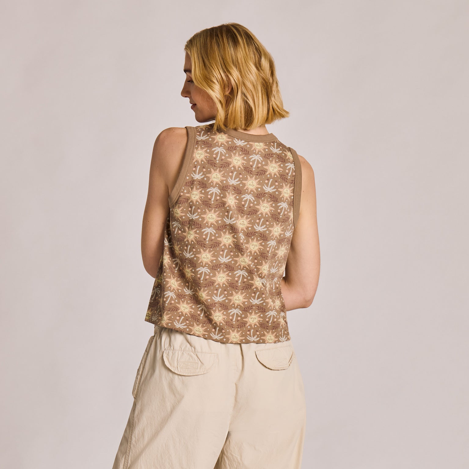 Women's Sun and Palms Pattern Crusher Boxy Tank - Mushroom Brown - 160535