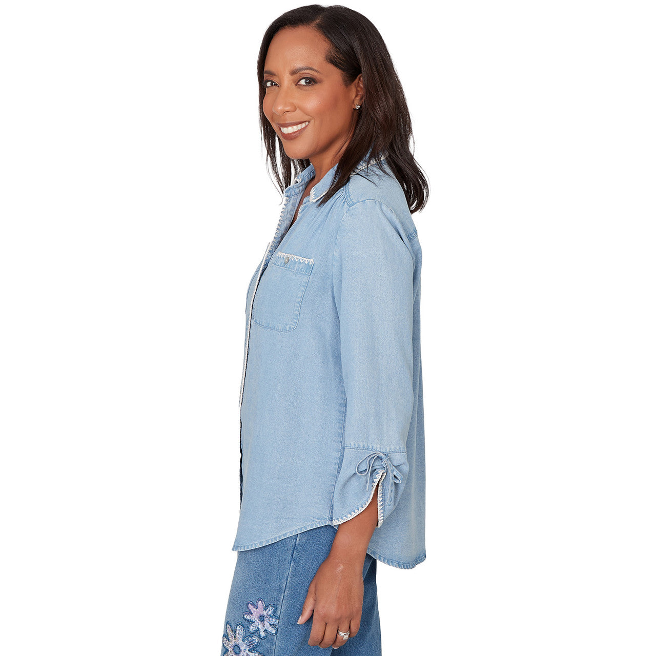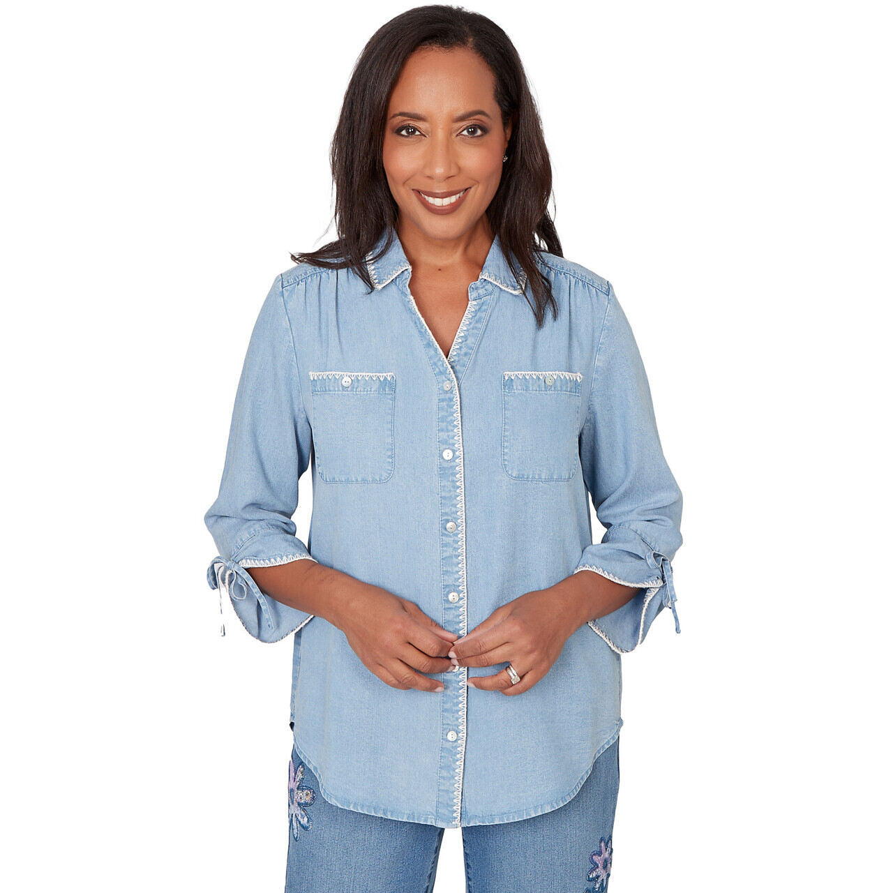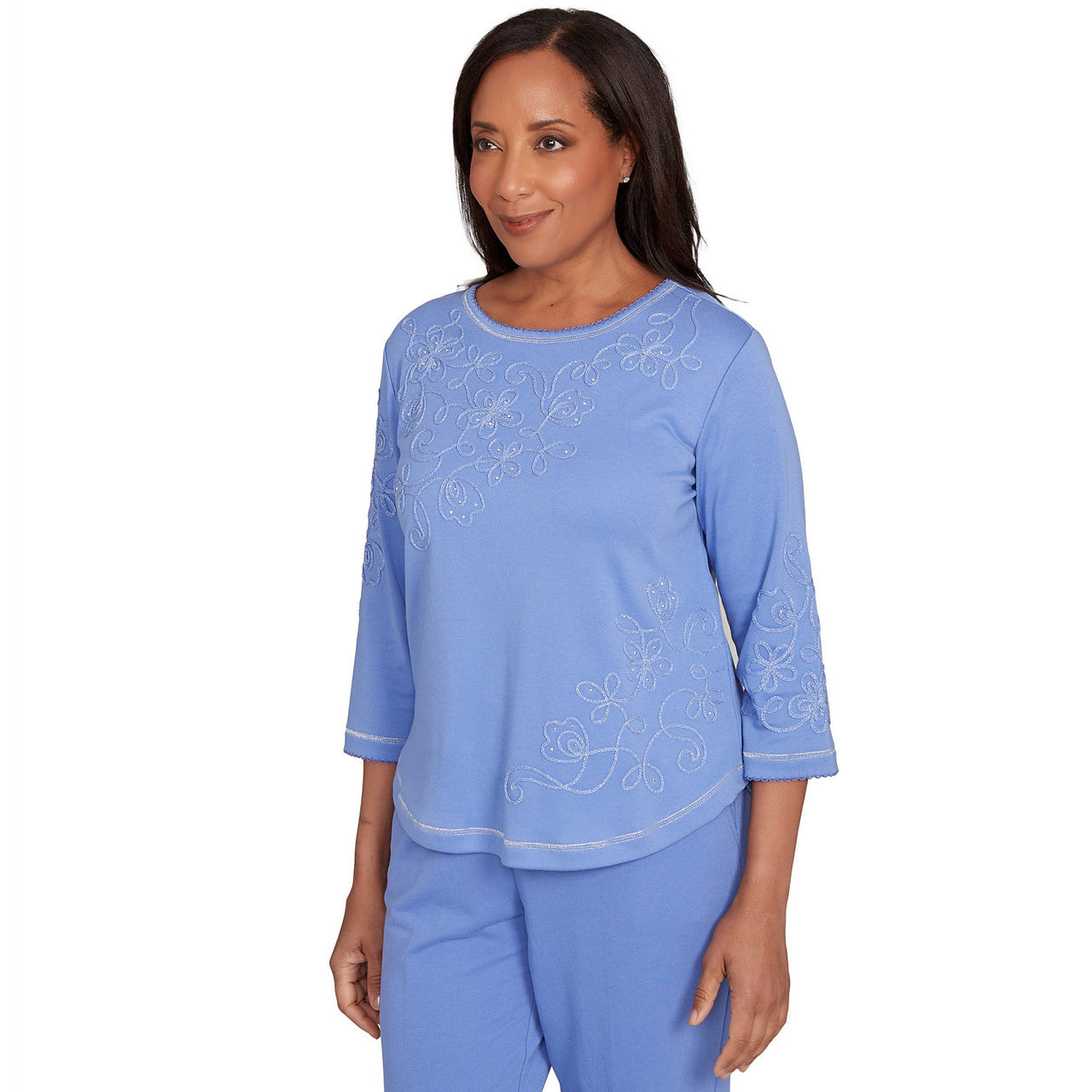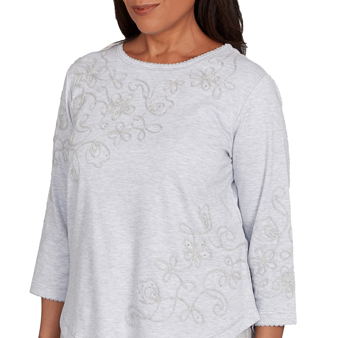 Women's Asymmetrical Floral Embroidered Detail Top - 18157