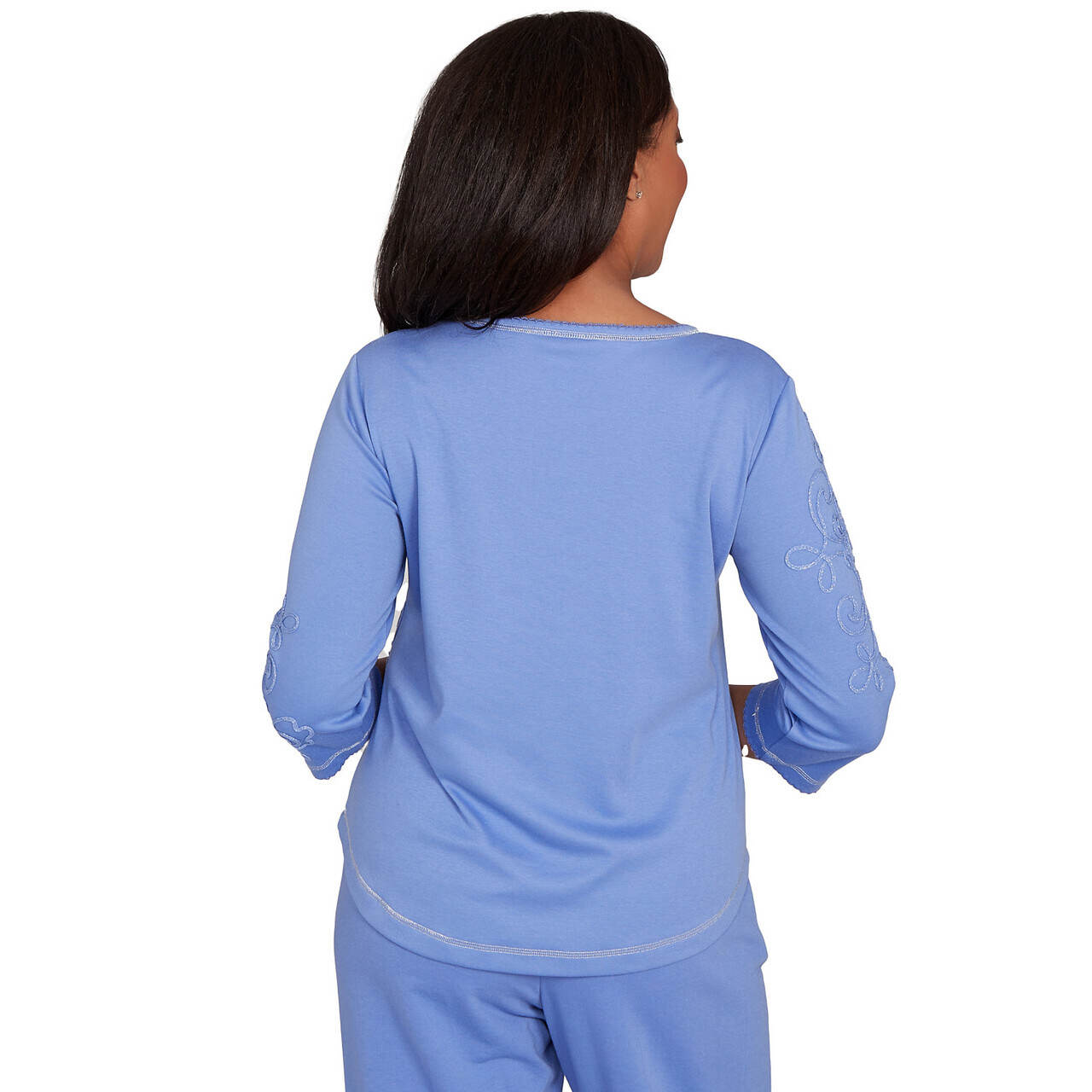 Women's Printed Burnout Henley 3/4-Sleeve Top - NRL2612